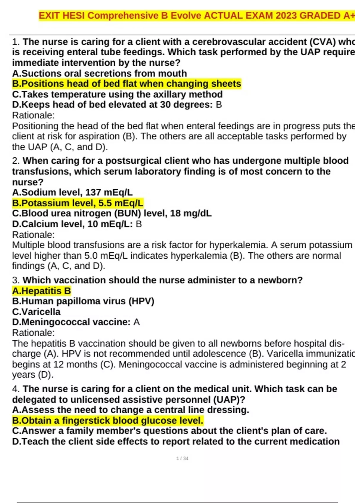 highest quality HESI PN & RN EXAM, all with accurate responses