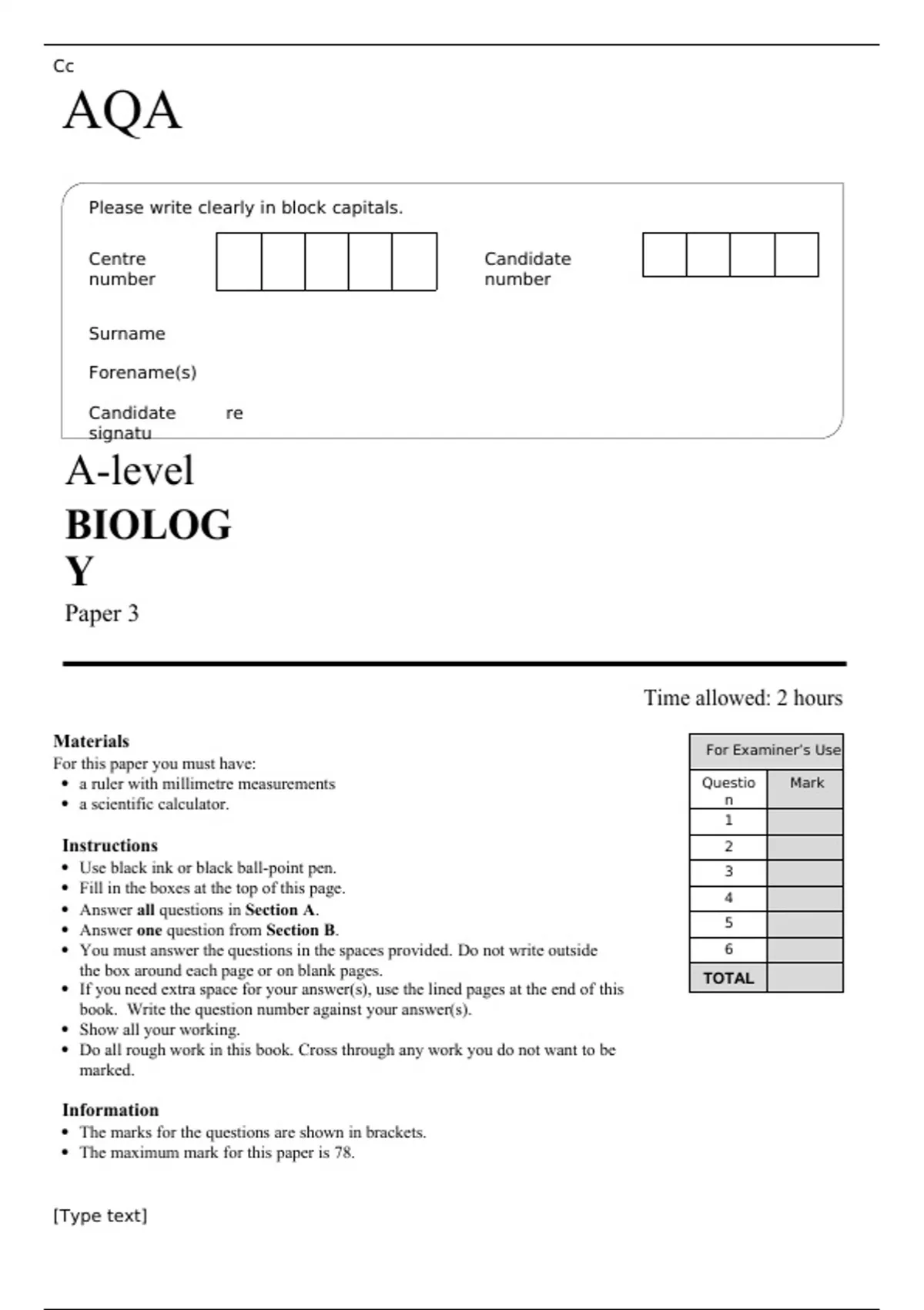 AQA A-level BIOLOGY Paper 3 actual paper june 2022