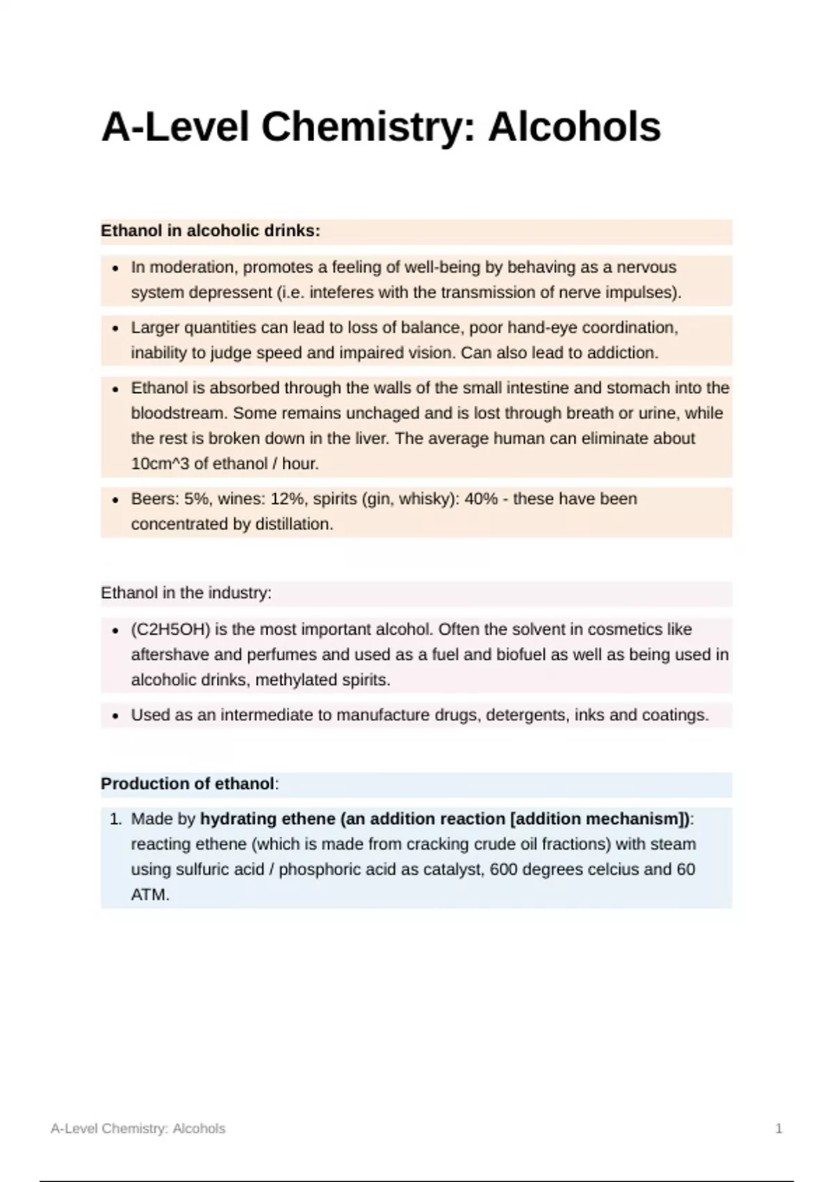 A-Level Chemistry: Alcohols 1
