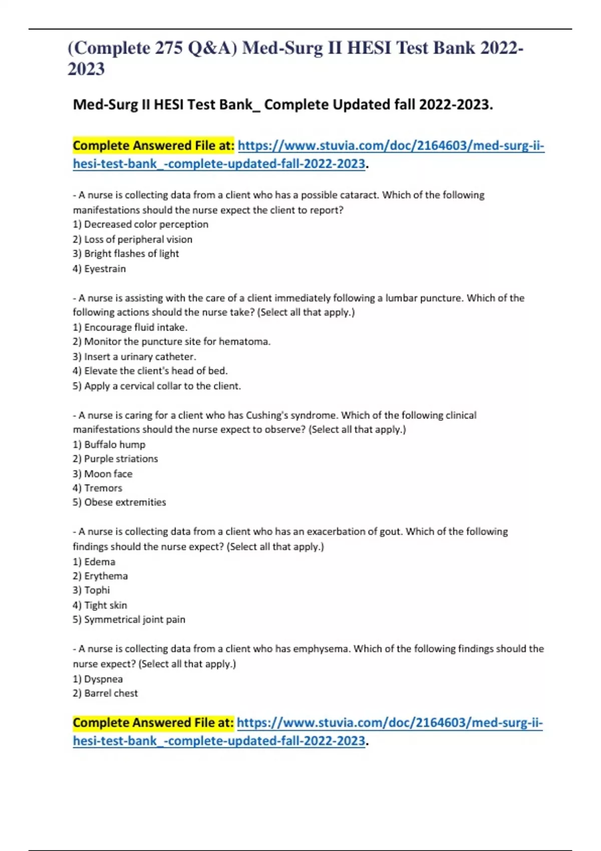 (Complete 275 Q&A) Med-Surg II HESI Test Bank (Complete 275 Q&A) Med-Surg II HESI Test Bank (Complete 275 Q&A) Med-Surg II HESI Test Bank (Complete 275 Q&A) Med-Surg II HESI Test Bank (Complete 275 Q&A) Med-Surg II HESI Test Bank (Complete 275 Q&A) Med-Surg II HESI Test Bank (Complete 275 Q&A) Med-Surg II HESI Test Bank