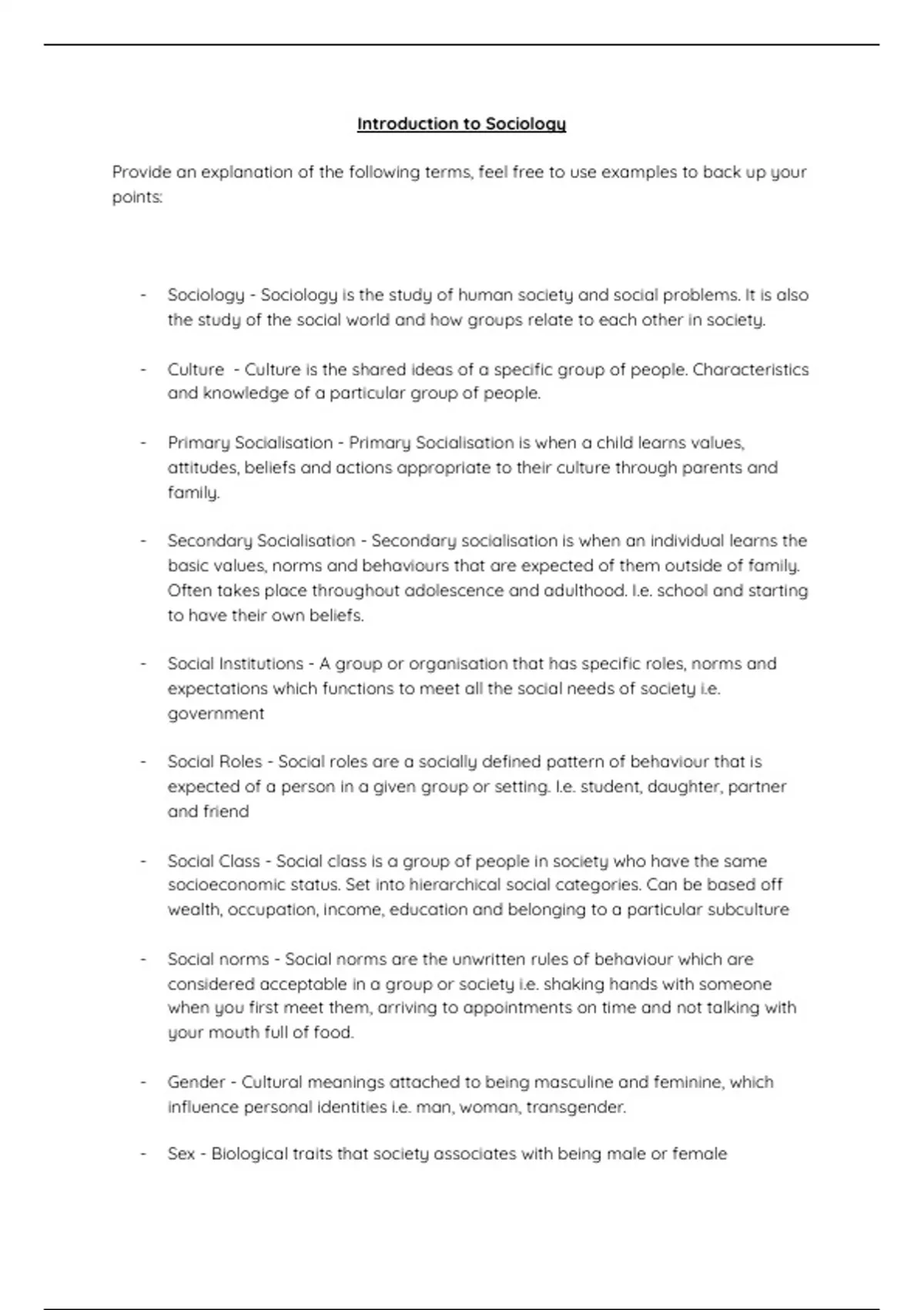 - Secondary Socialisation - Secondary socialisation is when an individual learns the