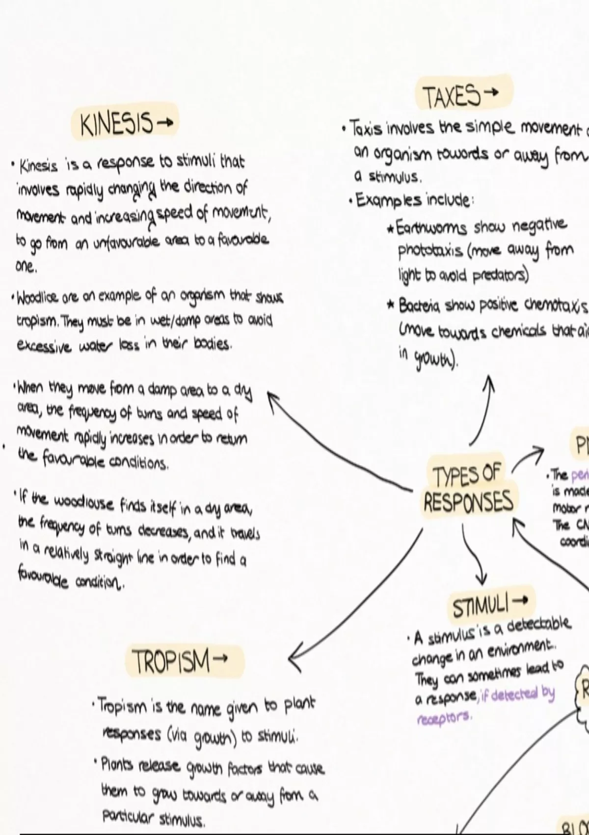 Summary AQA A Level Biology - Response To Stimuli Mindmap