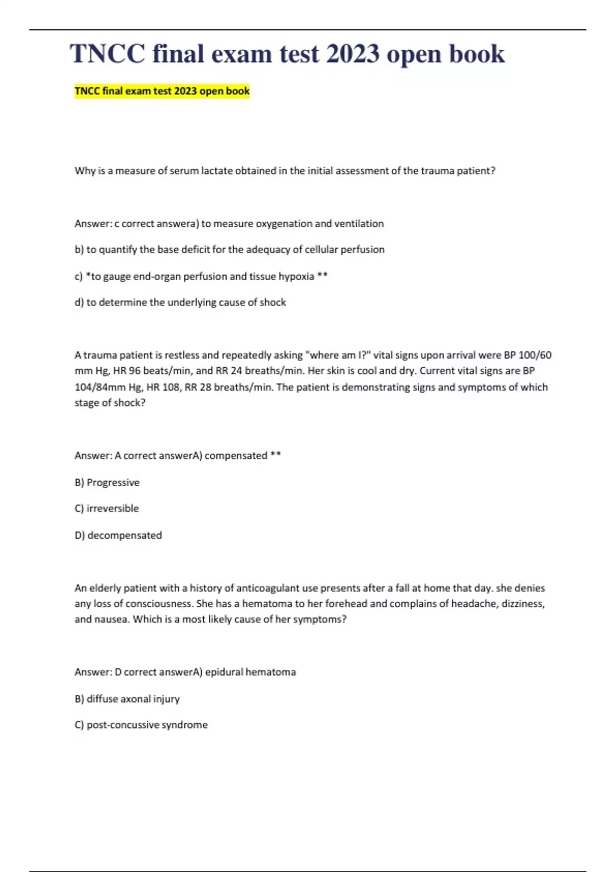A trauma patient is restless and repeatedly asking "where am I?" vital signs upon arrival were BP 100/60