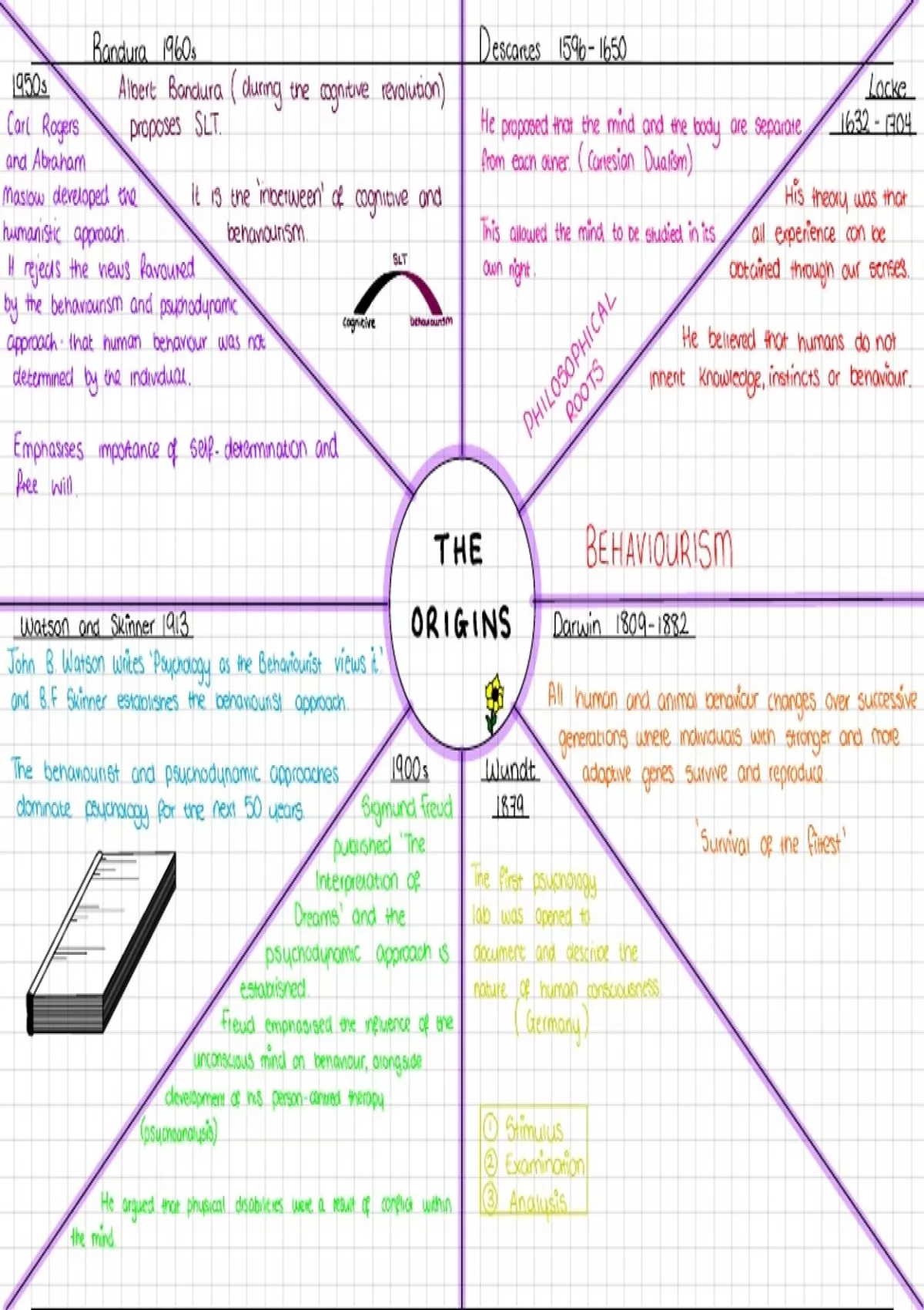 This document is a revision clock summary of the origins of psychology. It describes the main explanations of human behaviour from the beginning. These singular pages are perfect for exam season and to boost your knowledge.
