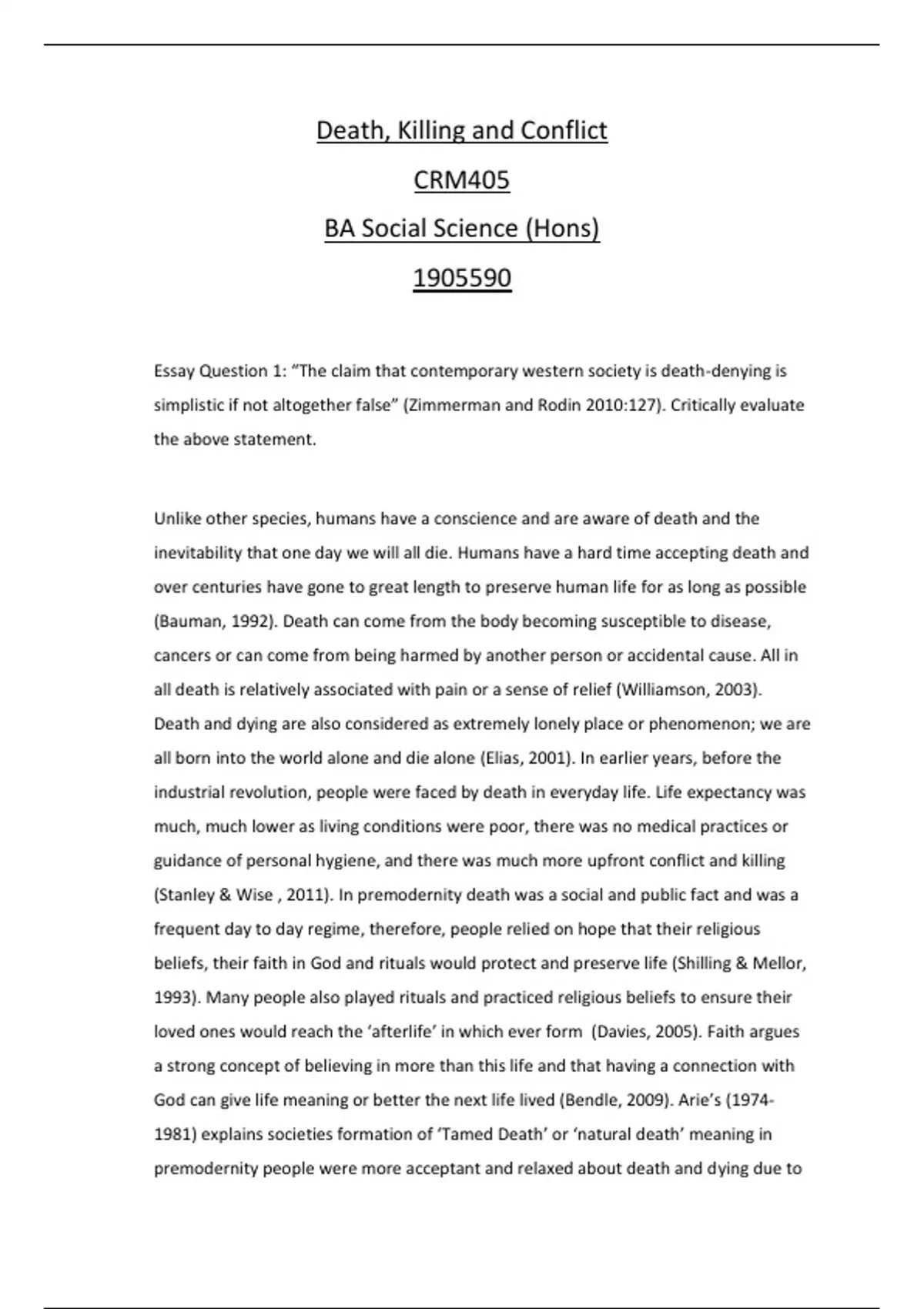 Essay Question 1: “The claim that contemporary western society is death-denying is