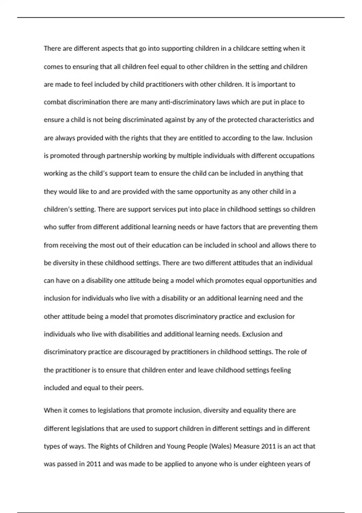 discriminatory practice are discouraged by practitioners in childhood settings. The role of