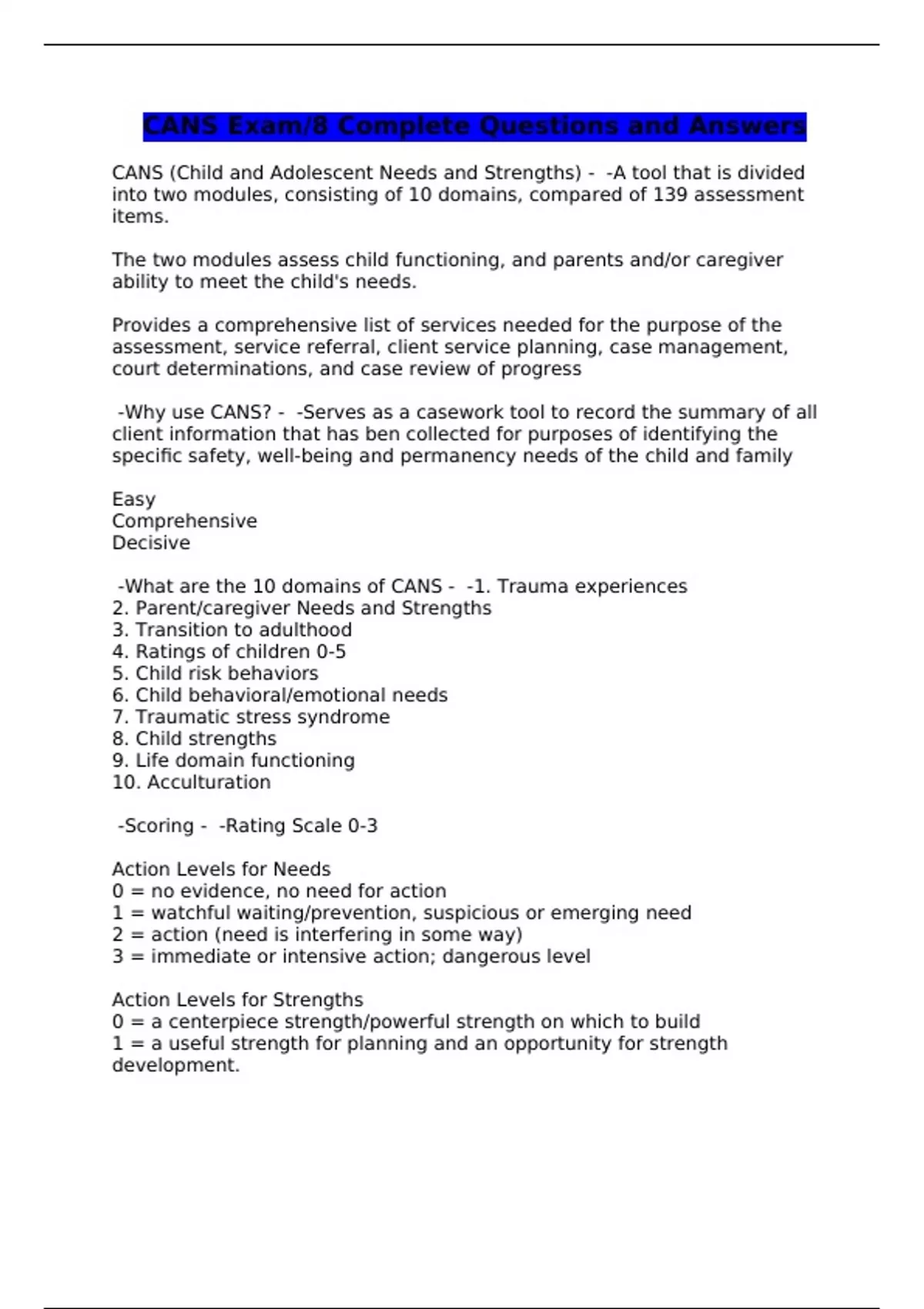 CANS Exam/8 Complete Questions and Answers