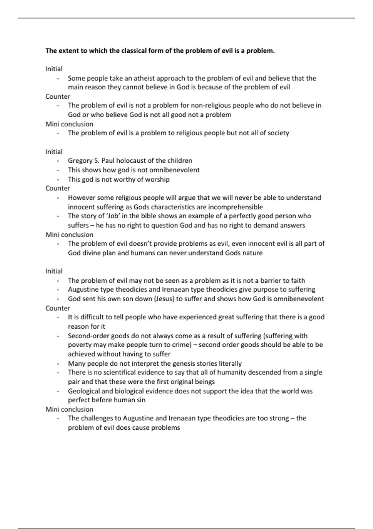 - This helps to support the idea that God is all loving as he hasn’t physically caused evil