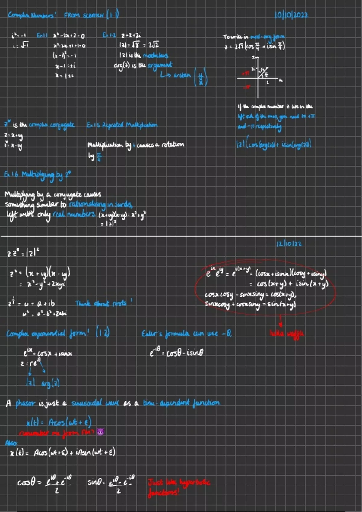 In depth notes breaking down the Complex Numbers chapter taught in Autumn Term Year 1, in the Electronic and Electrical Engineering Department at Imperial College London