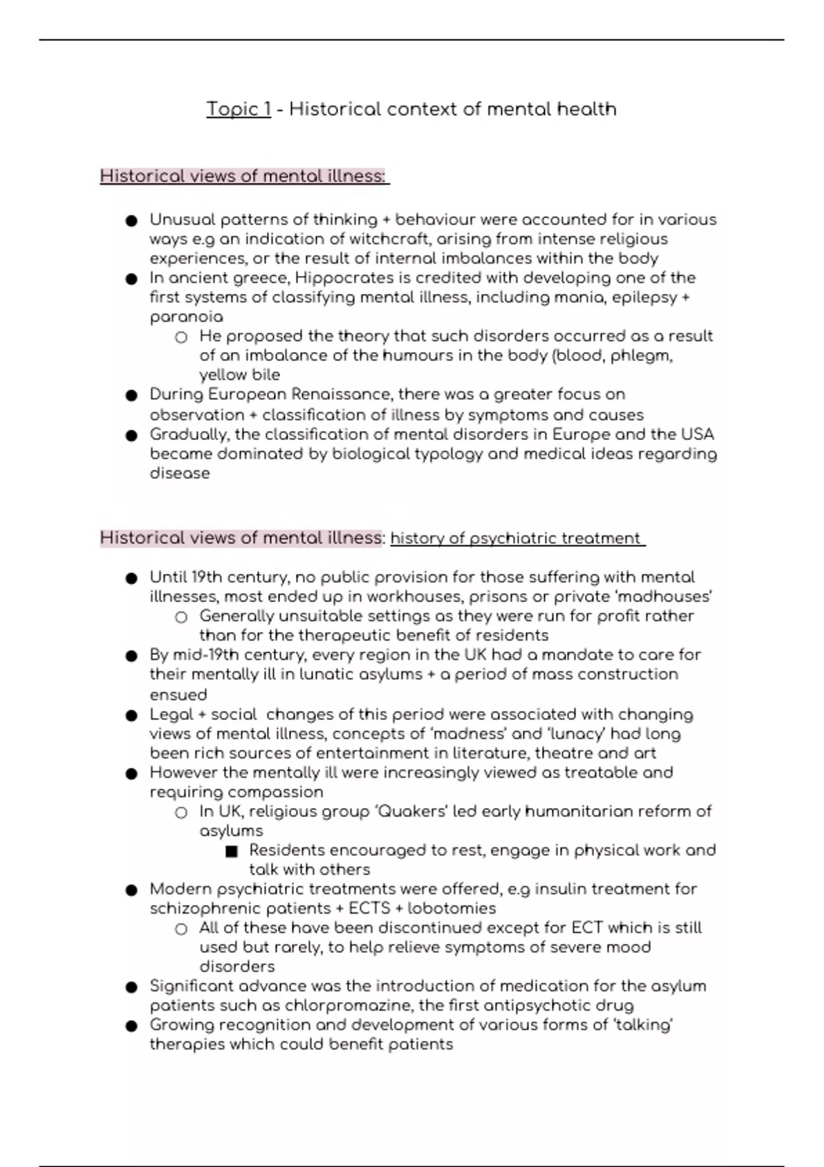 Topic 1 - Historical context of mental health