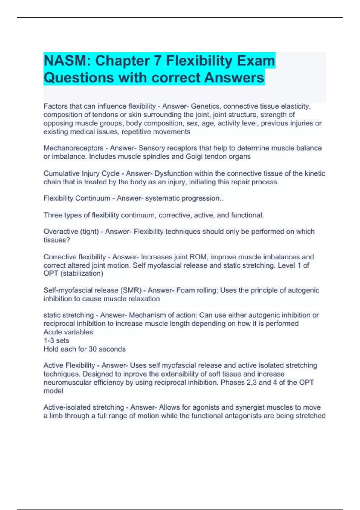 NASM: Chapter 7 Flexibility Exam Questions with correct Answers