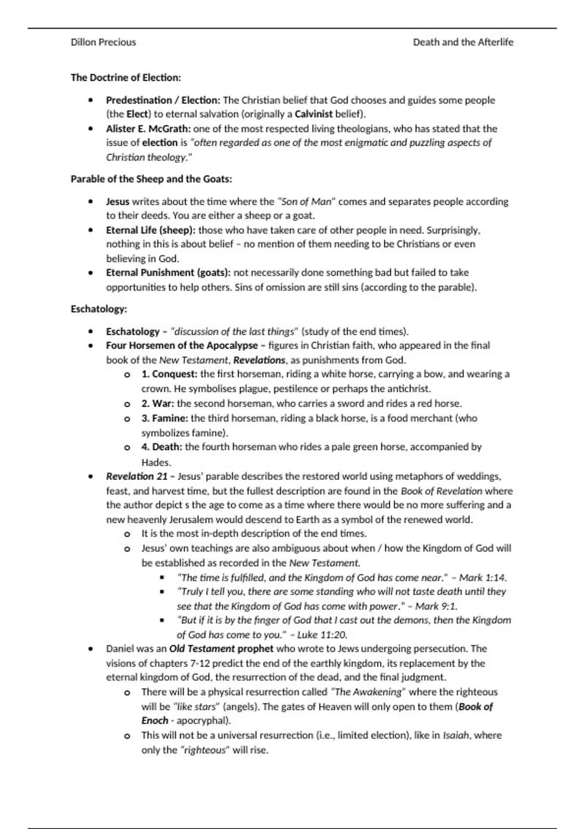 Notes covering the H573/03 Developments in Christian Thought topic of Death and the Afterlife, with explanation and notes covering all the necessary content for the exams.