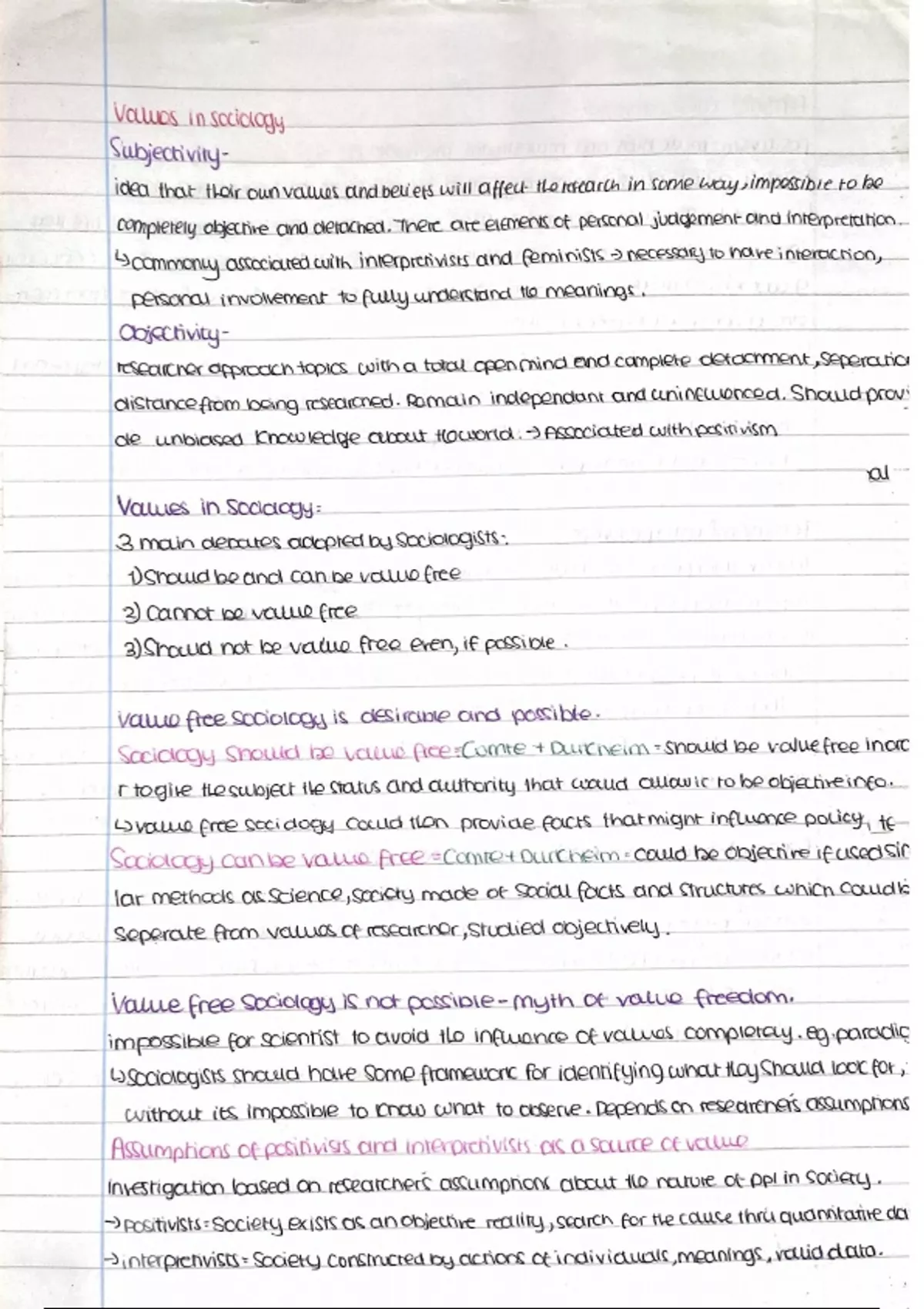 Values in sociology notes
