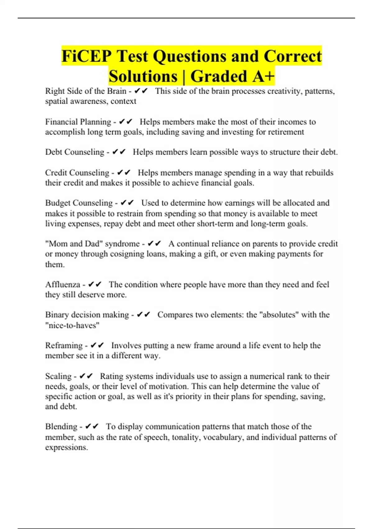 FiCEP Test Questions and Correct Solutions | Graded A+