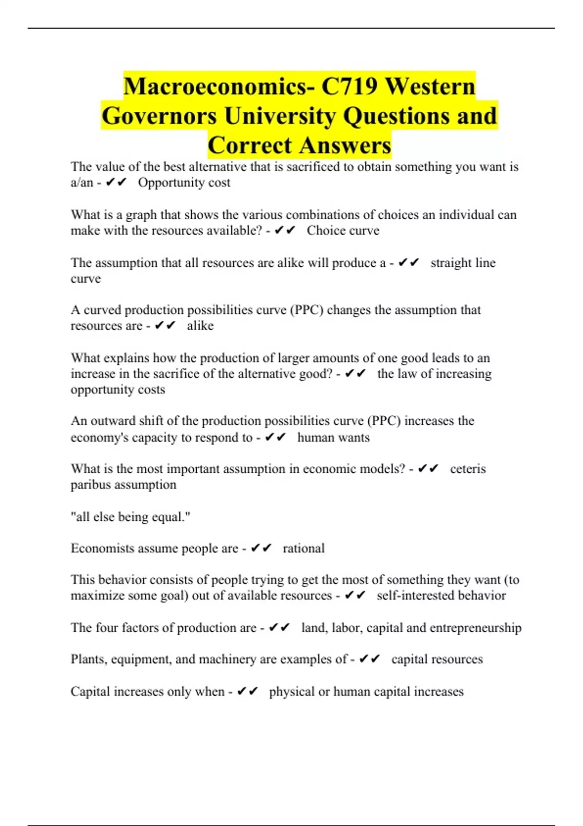 Macroeconomics- C719 Western Governors University Questions and Correct Answers