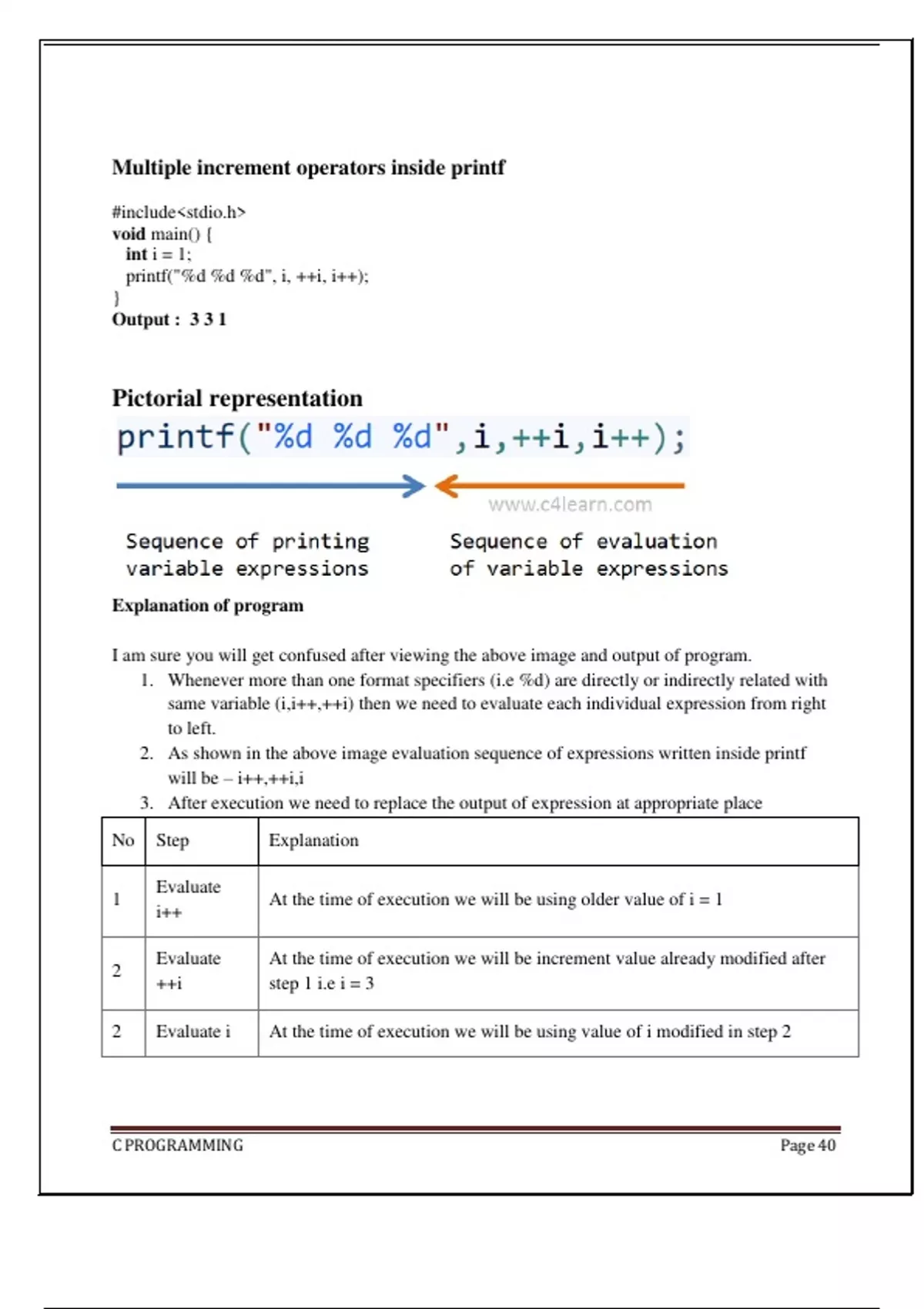 2. As shown in the above image evaluation sequence of expressions written inside printf