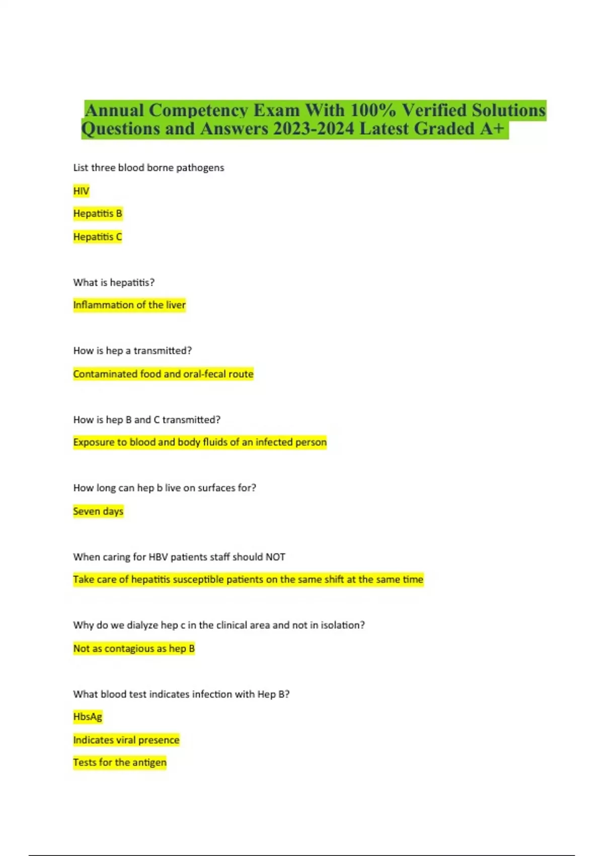 Annual Competency: Final Exam Questions With Verified Solutions Questions and Answers (Latest Graded 100%)