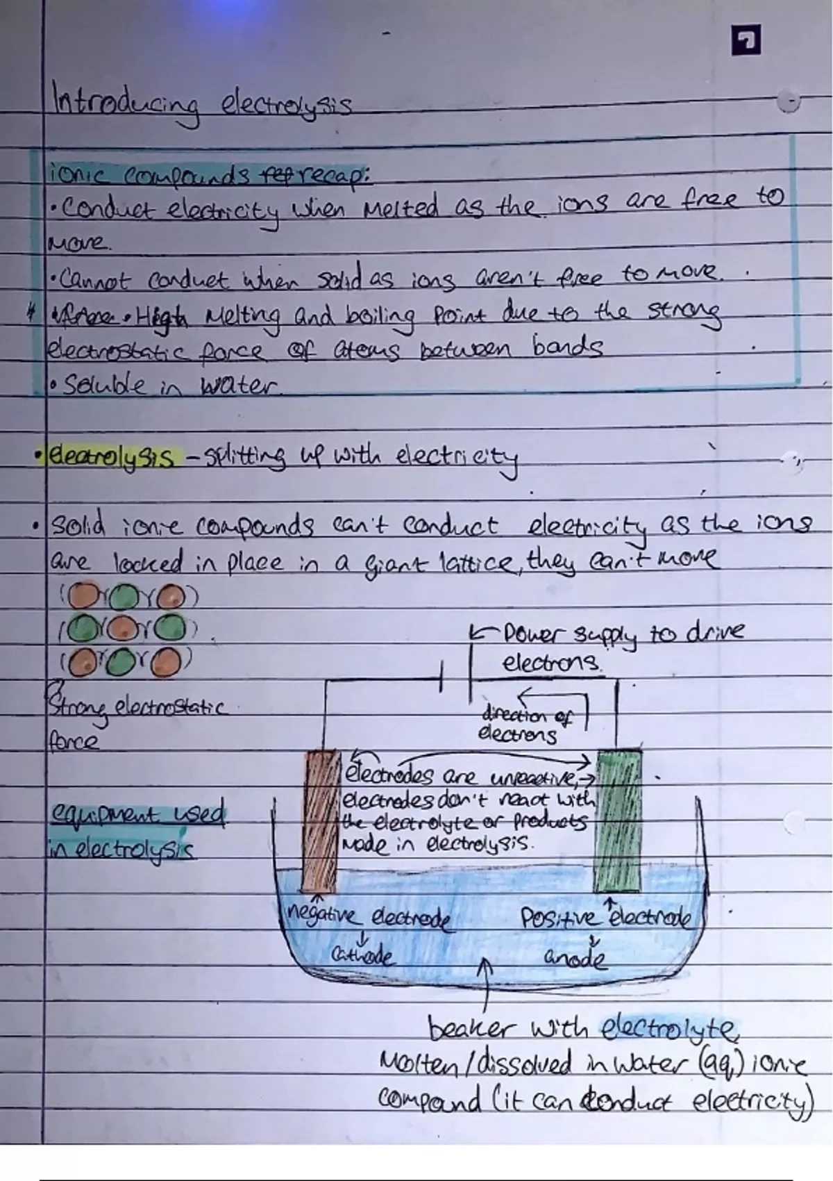 Summary GCSE Combined Science Chemistry - electrolysis