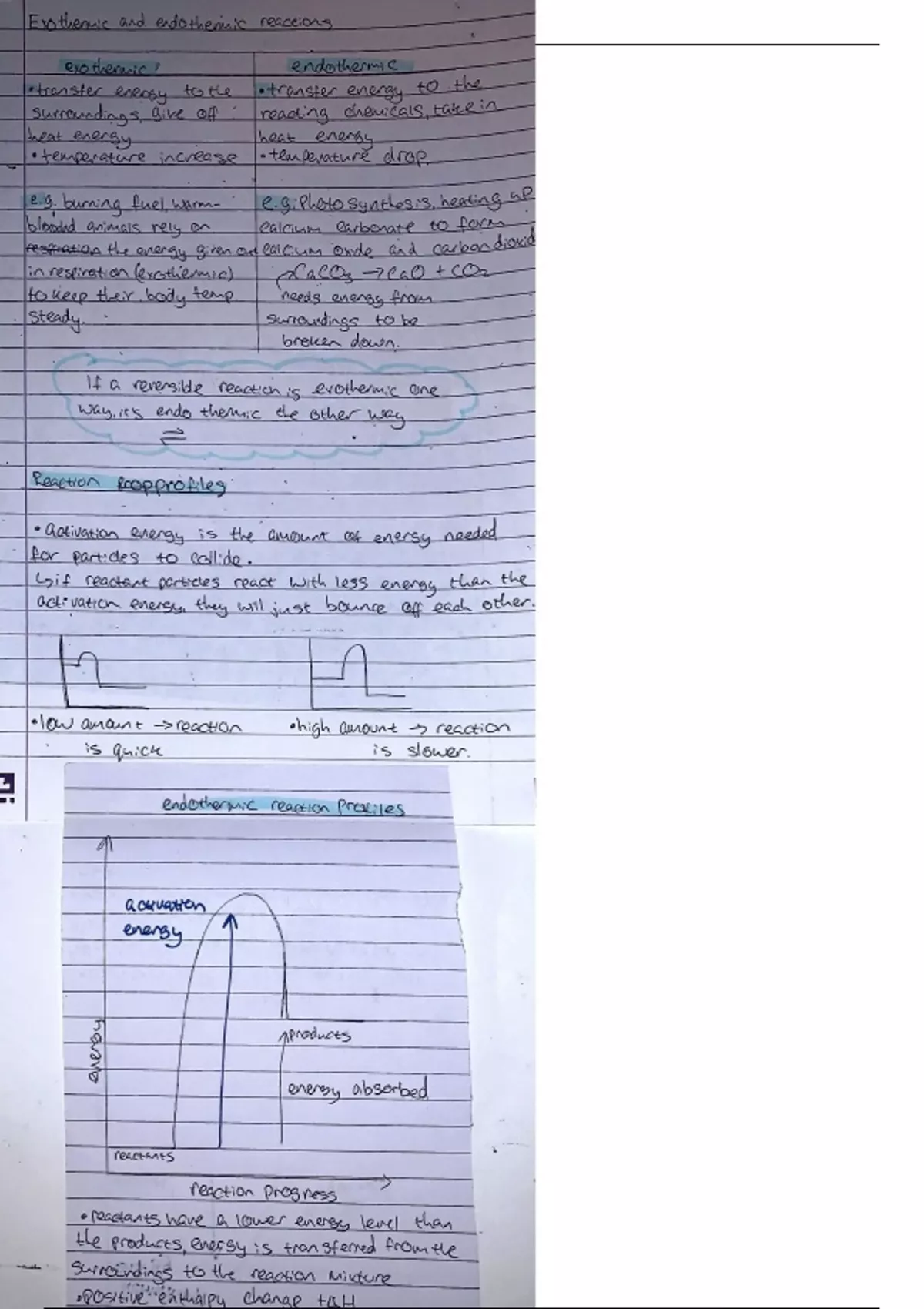 Summary GCSE Combined Science Chemistry - energy changes