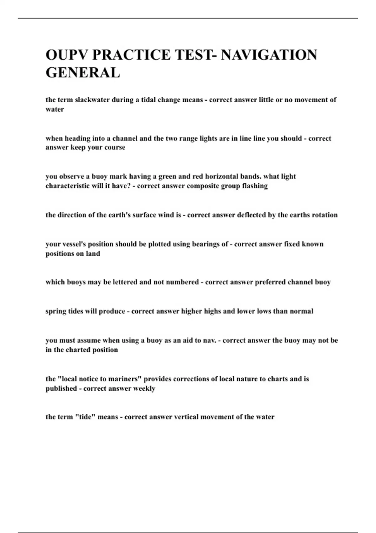 OUPV PRACTICE TEST- NAVIGATION GENERAL|UPDATED&VERIFIED|100% SOLVED|GUARANTEED SUCCESS
