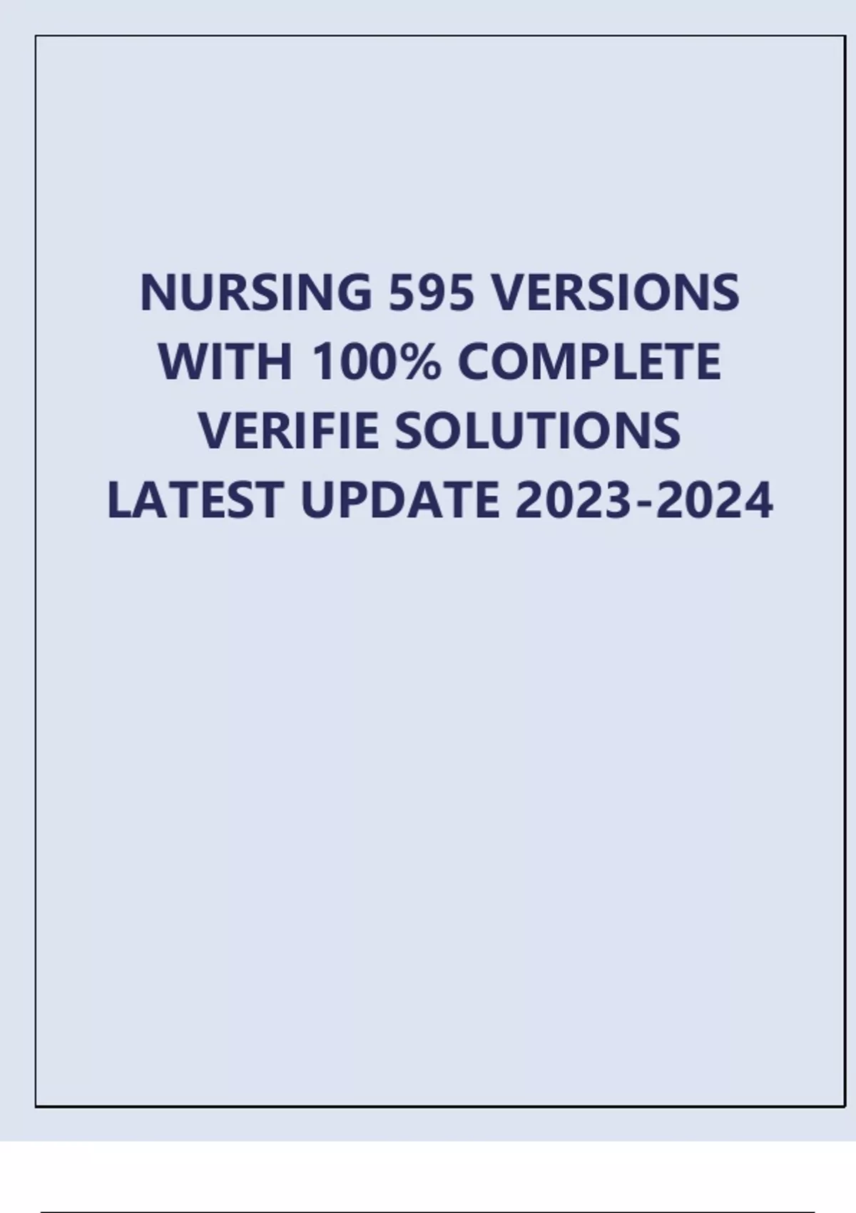 NURSING 595 VERSIONS WITH 100% COMPLETE VERIFIE SOLUTIONS LATEST UPDATE