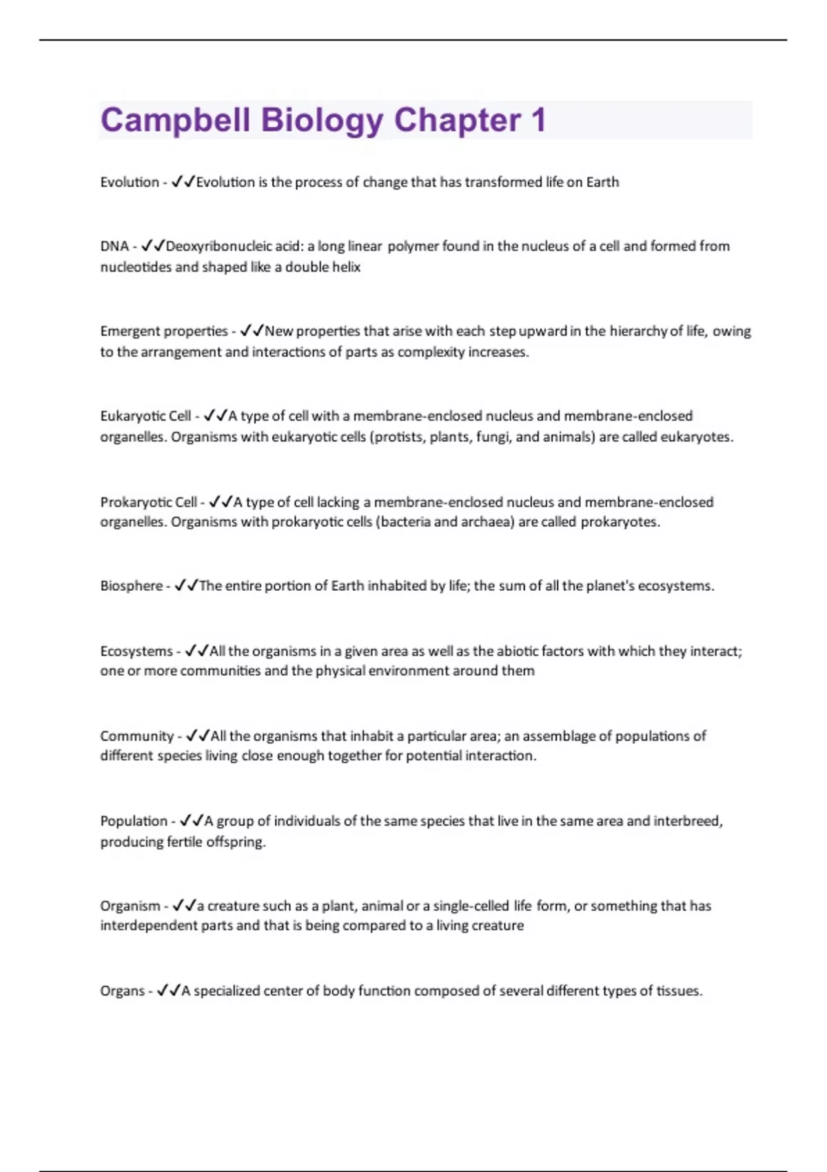 Campbell Biology Chapter 1 | 127 Questions with 100% correct answers | Verified