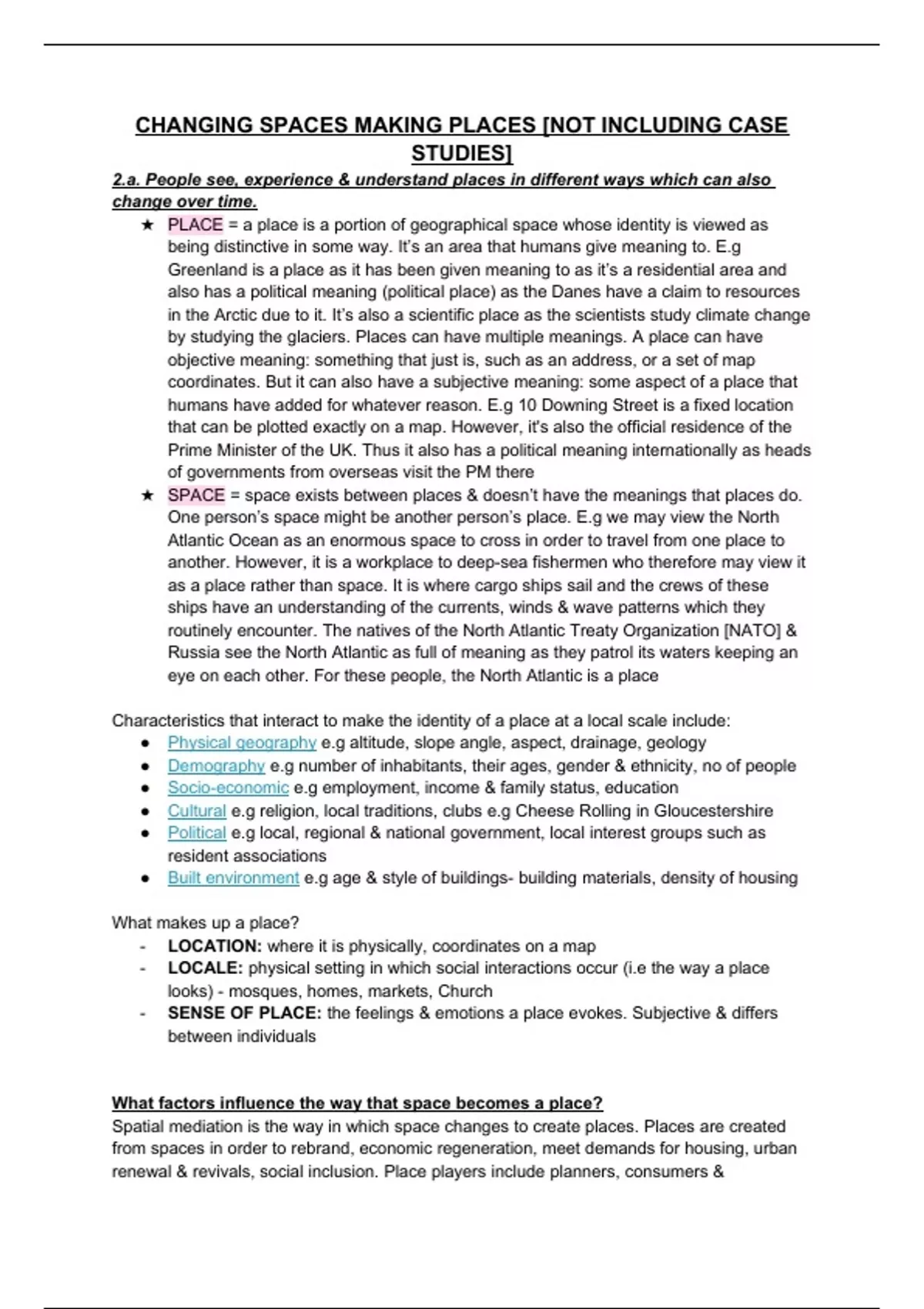 live. There could be political factors that also influence the way that space becomes a place.