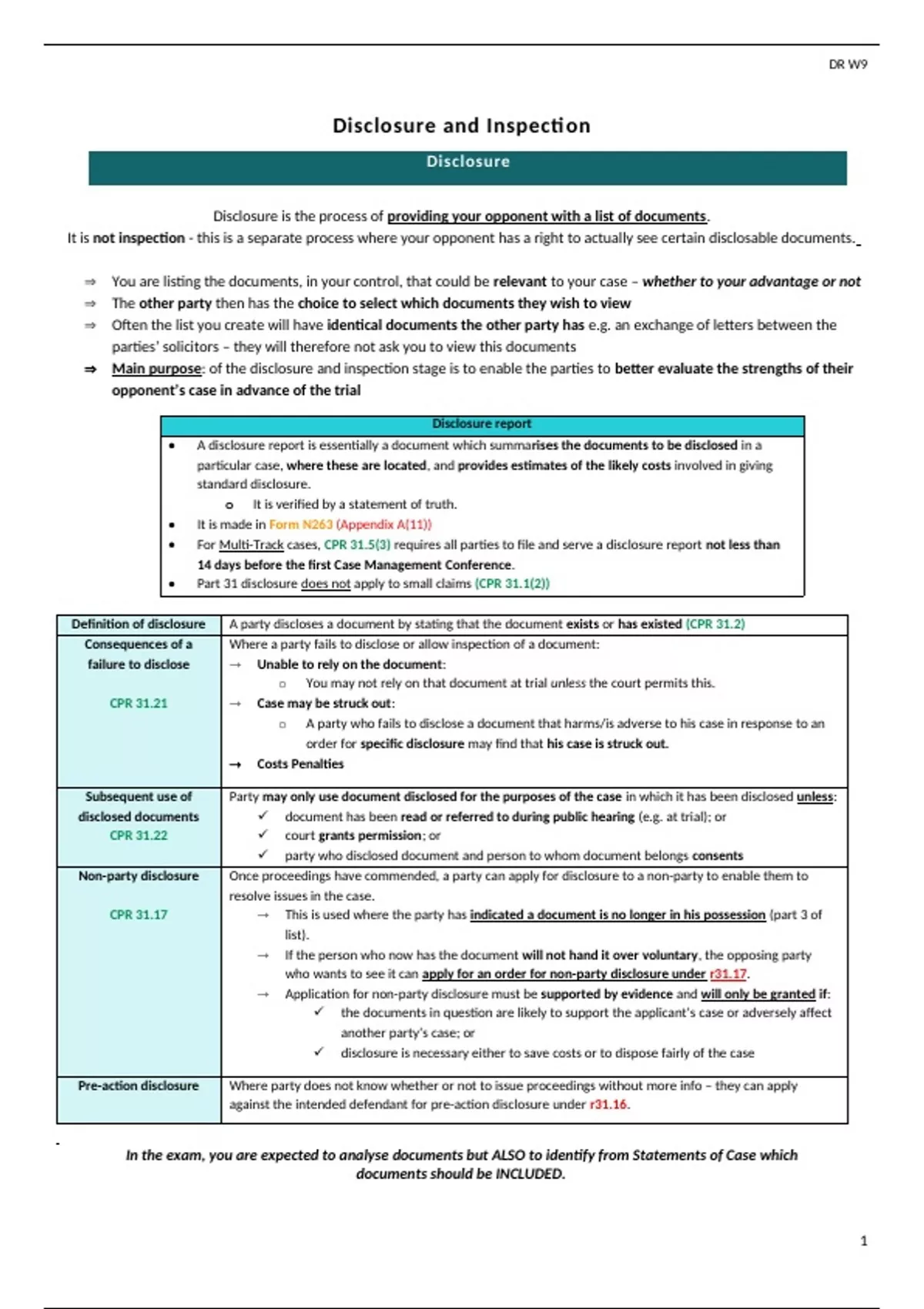Summary Civil litigation: disclosure