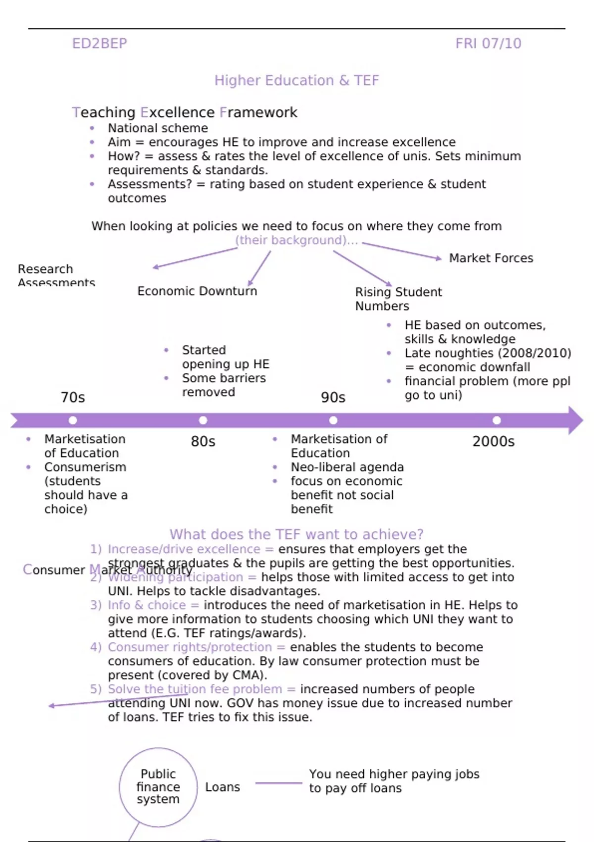 Lecture notes: Higher education and TEF
