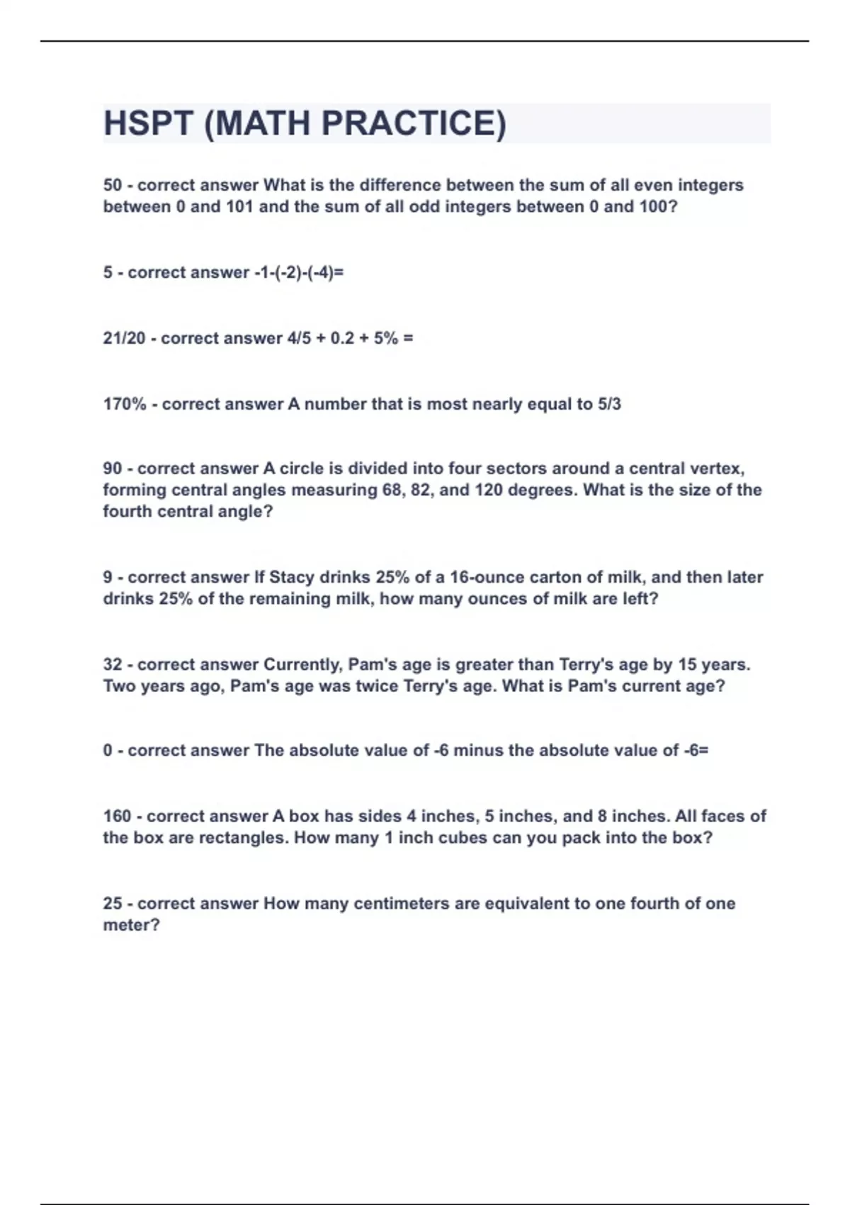 HSPT (MATH PRACTICE)|UPDATED&VERIFIED|100% SOLVED|GUARANTEED SUCCESS
