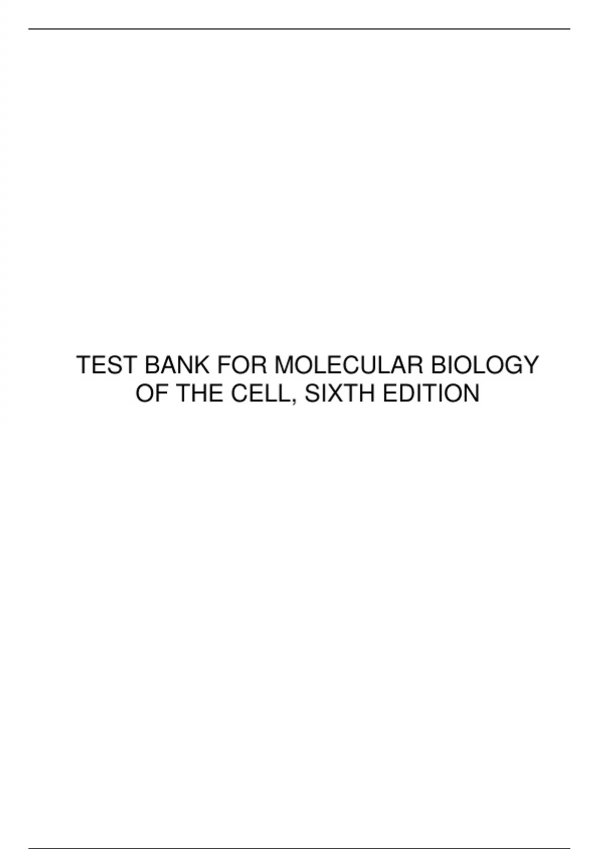 TEST BANK FOR MOLECULAR BIOLOGY OF THE CELL, SIXTH EDITION