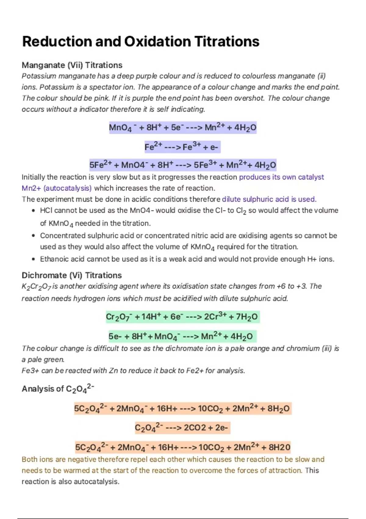 ALEVEL CHEMISTRY - TRANSITION METALS REDUCTION AND OXIDATION REACTIONS
