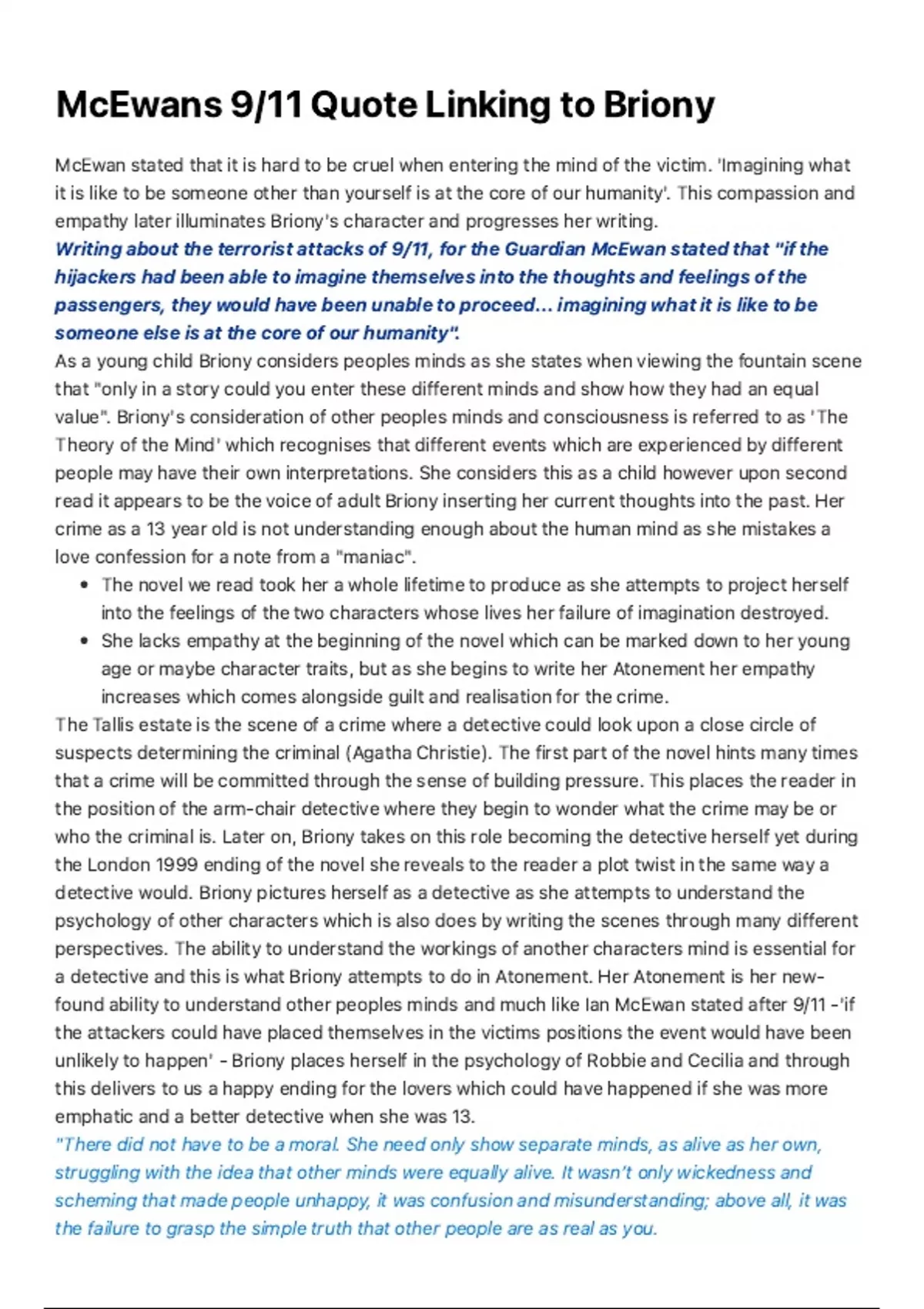 AQA ENGLISH LITERATURE B - CRIME WRITING ATONEMENT NOTES McEwan's 9/11 Essay Linking to the Novel - Linking to Briony being a bad detective herself.