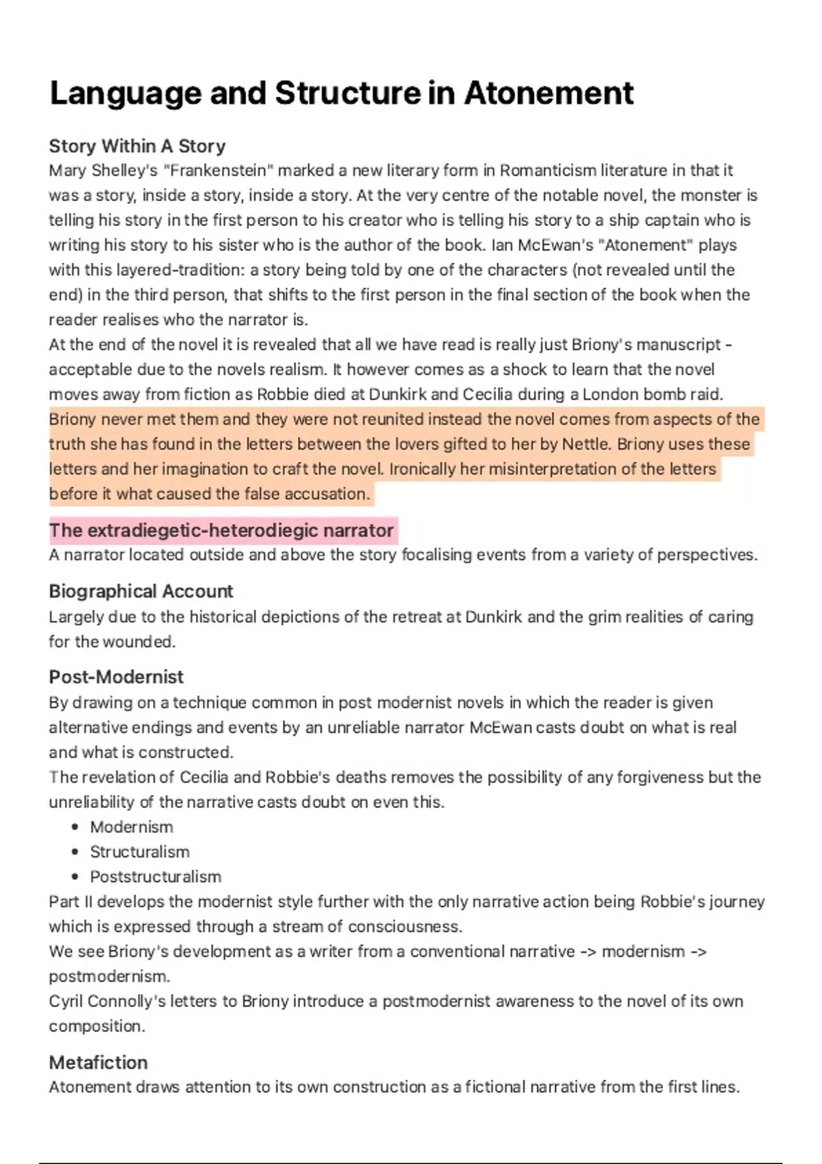 We see Briony's development as a writer from a conventional narrative -> modernism ->