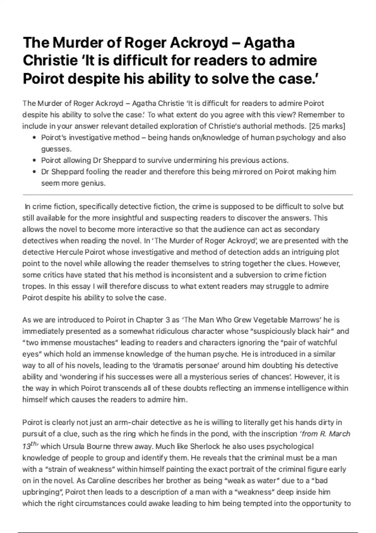 detectives when reading the novel. In ‘The Murder of Roger Ackroydʼ, we are presented with the
