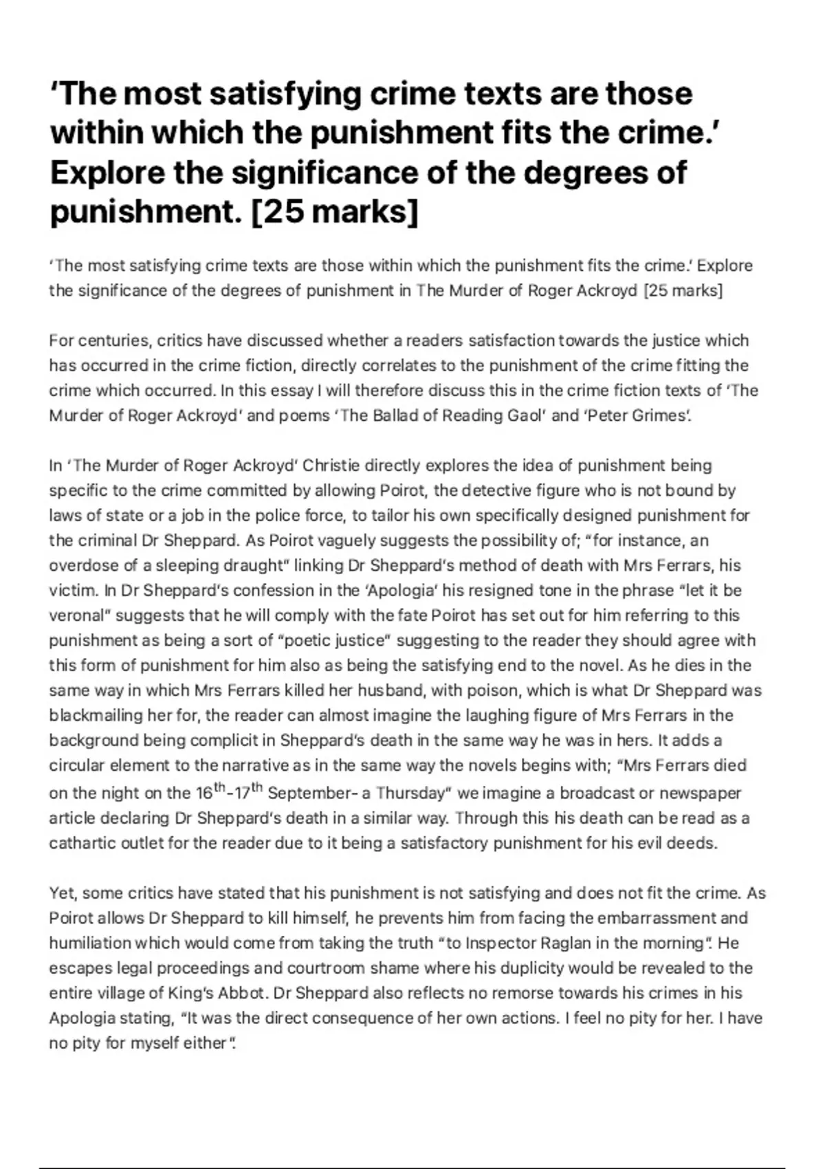 the significance of the degrees of punishment in The Murder of Roger Ackroyd [25 marks]