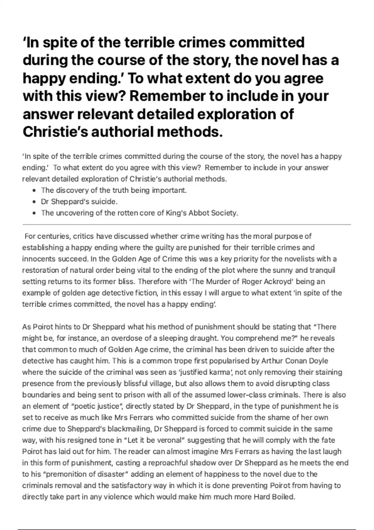 crime due to Sheppardʼs blackmailing, Dr Sheppard is forced to commit suicide in the same