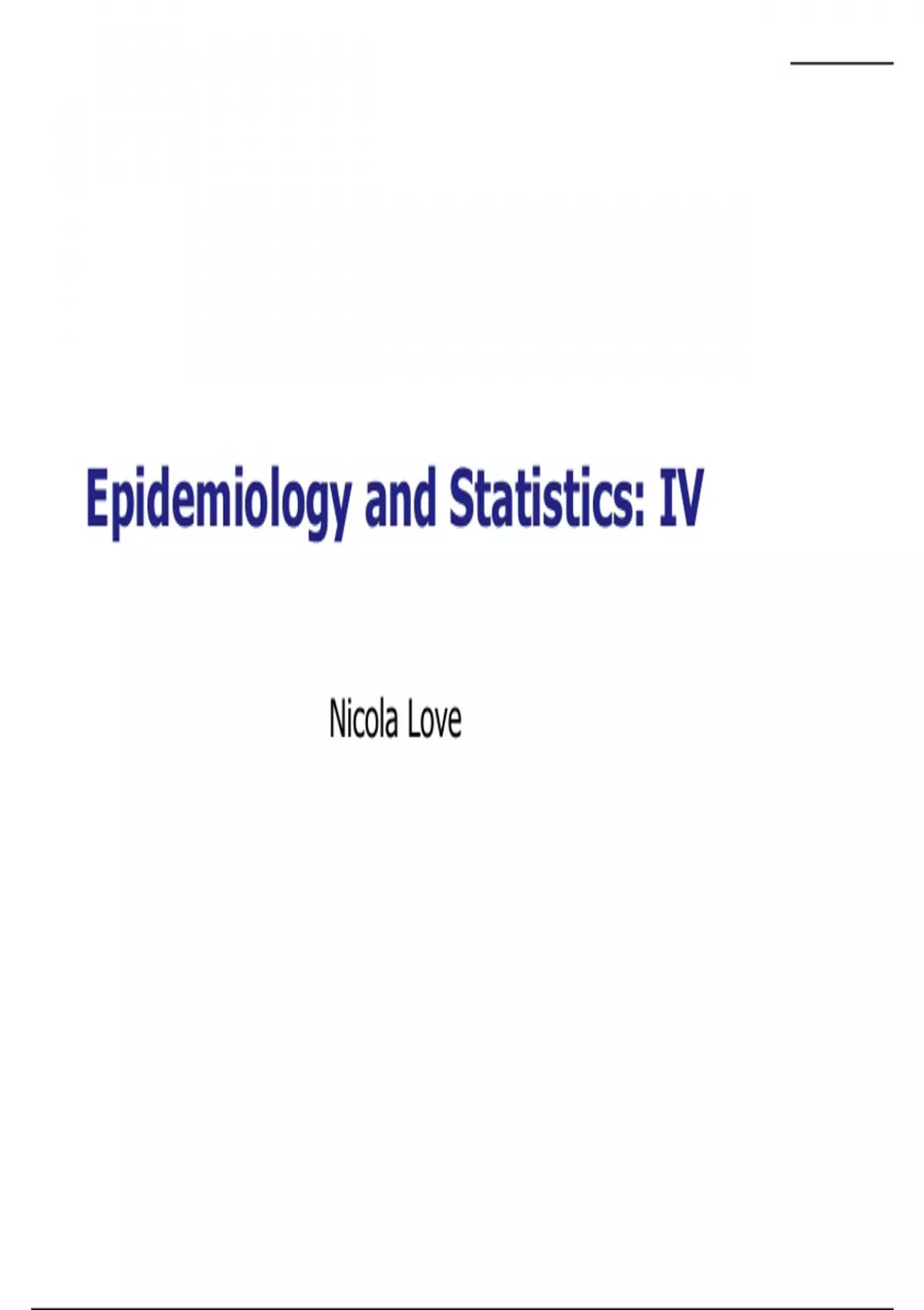 Epidemiology and Statistics: IV