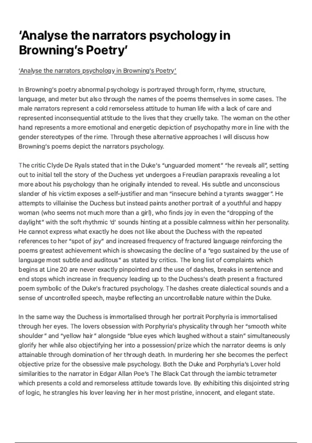 ‘Analyse the narrators psychology in Browningʼs Poetryʼ