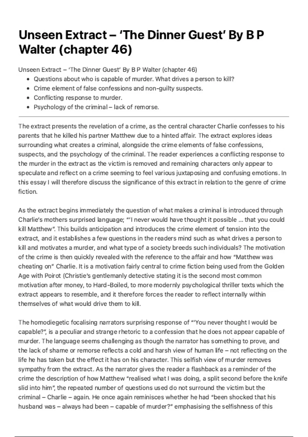 Unseen Extract – ‘The Dinner Guestʼ By B P Walter (chapter 46)