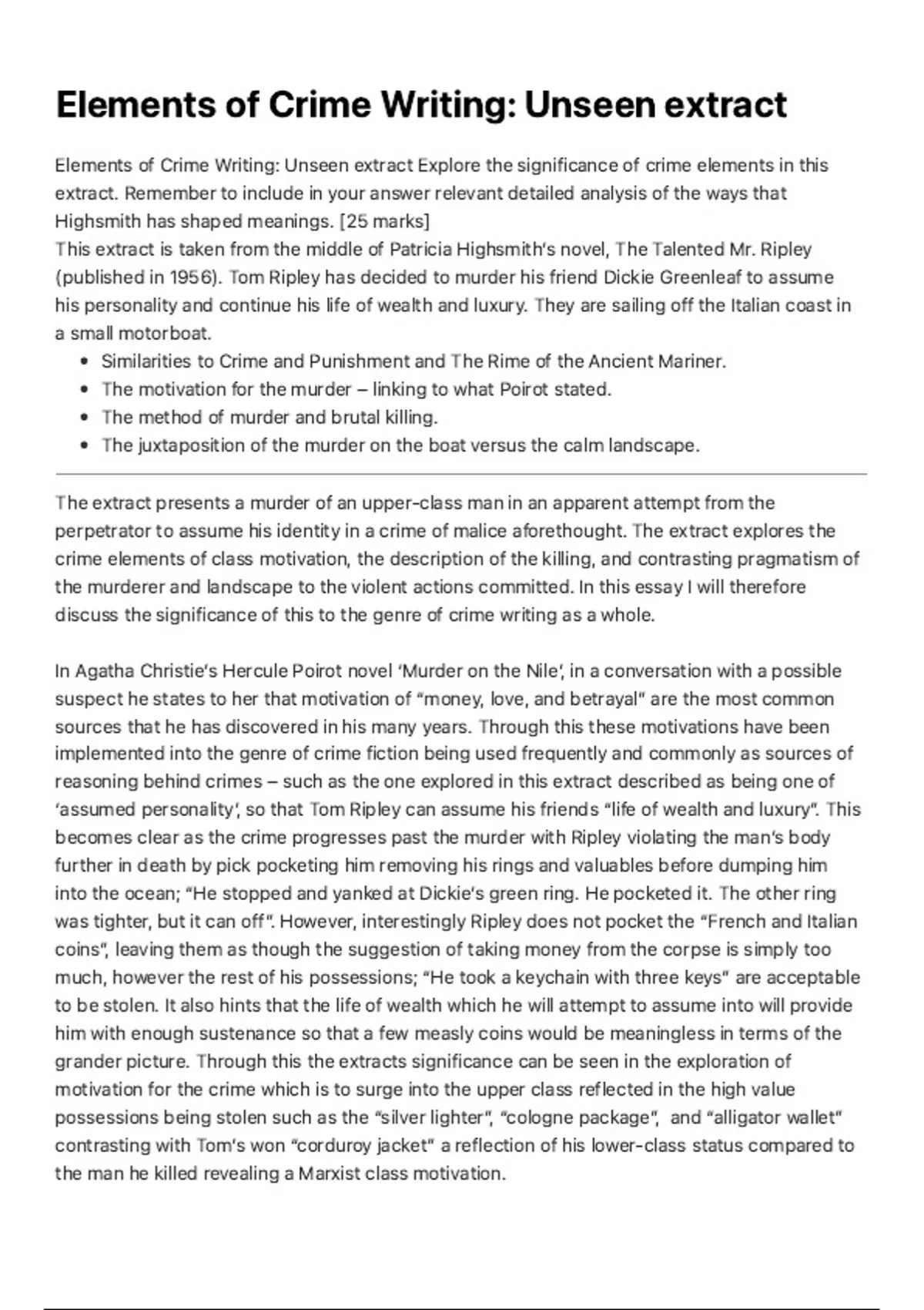 Elements of Crime Writing: Unseen extract Explore the significance of crime elements in this