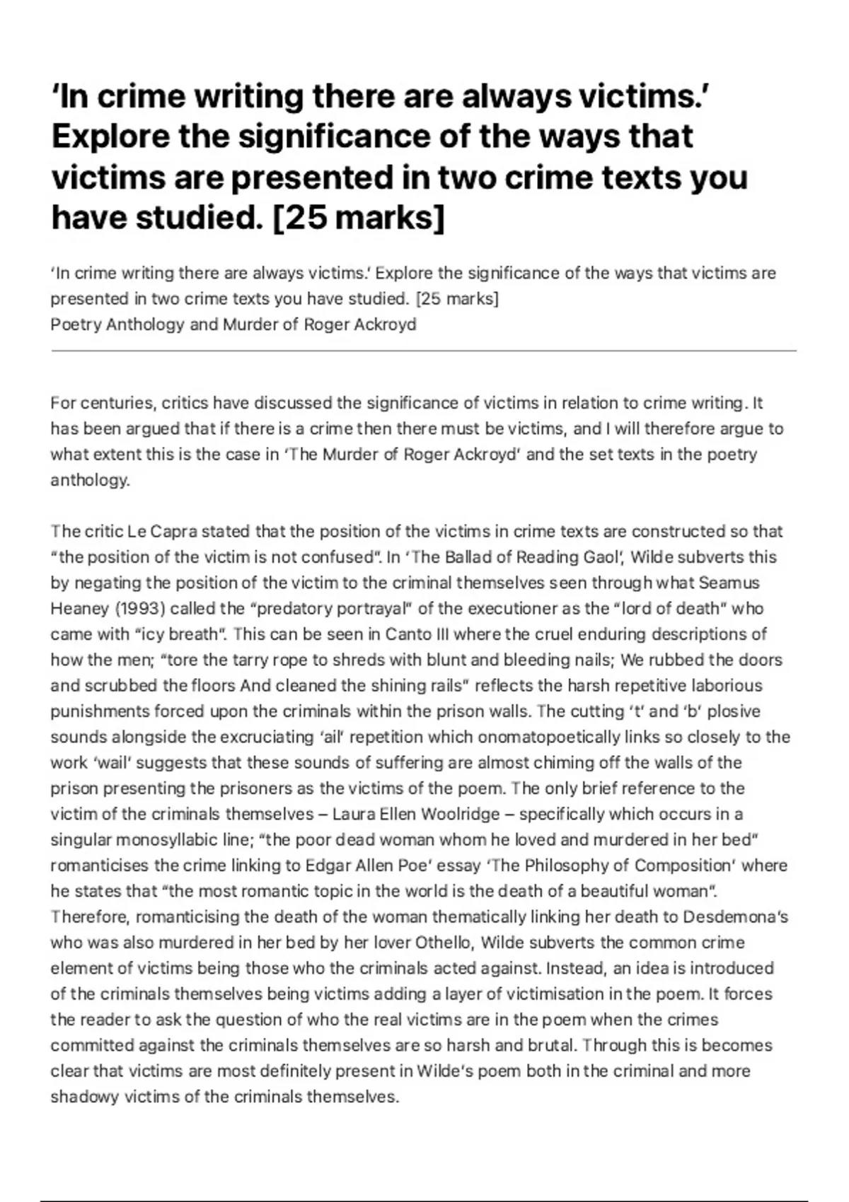 ‘In crime writing there are always victims.ʼ Explore the significance of the ways that victims are