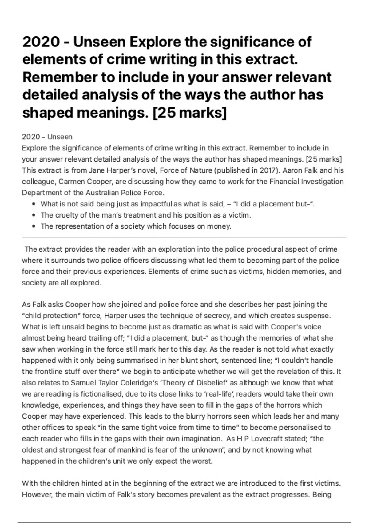 The extract provides the reader with an exploration into the police procedural aspect of crime