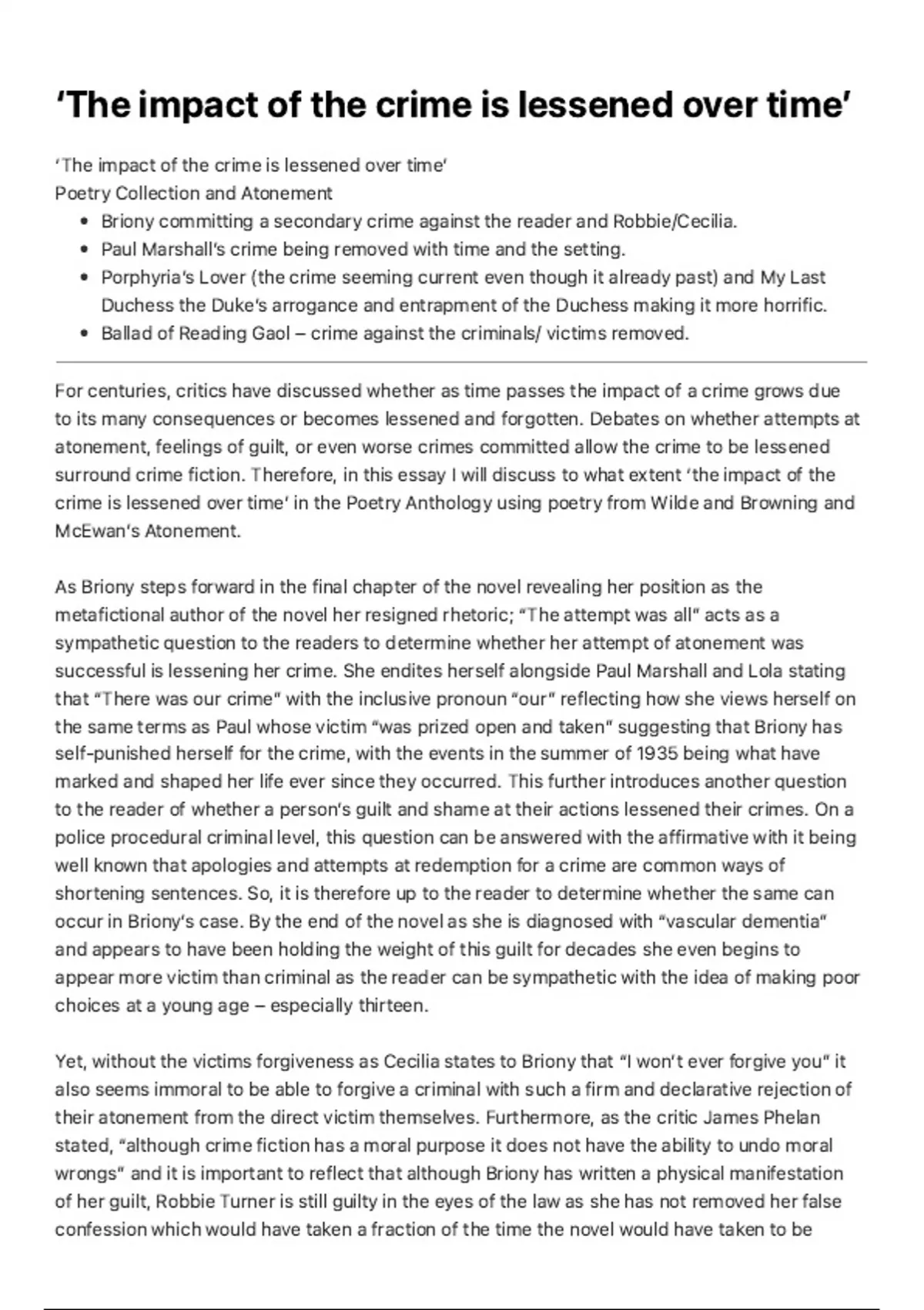 crime is lessened over timeʼ in the Poetry Anthology using poetry from Wilde and Browning and