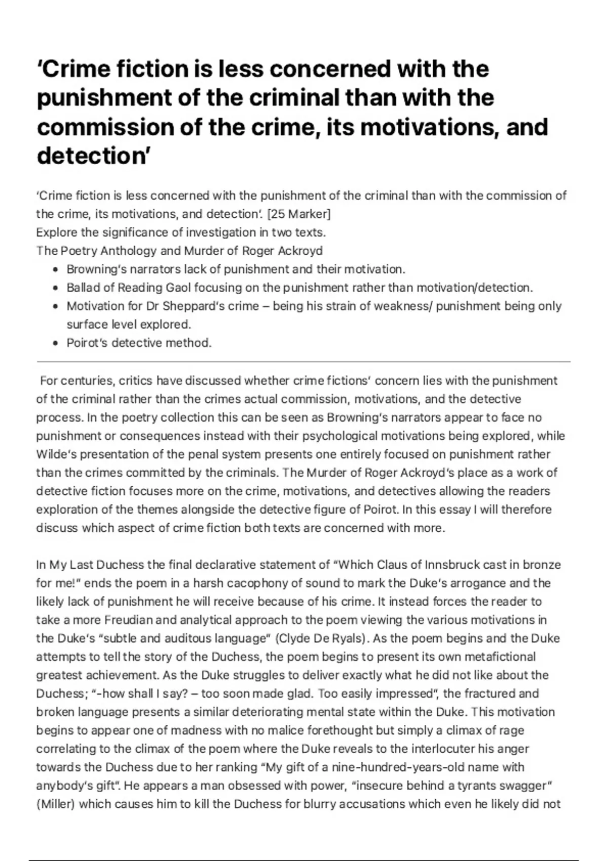 Ballad of Reading Gaol focusing on the punishment rather than motivation/detection.