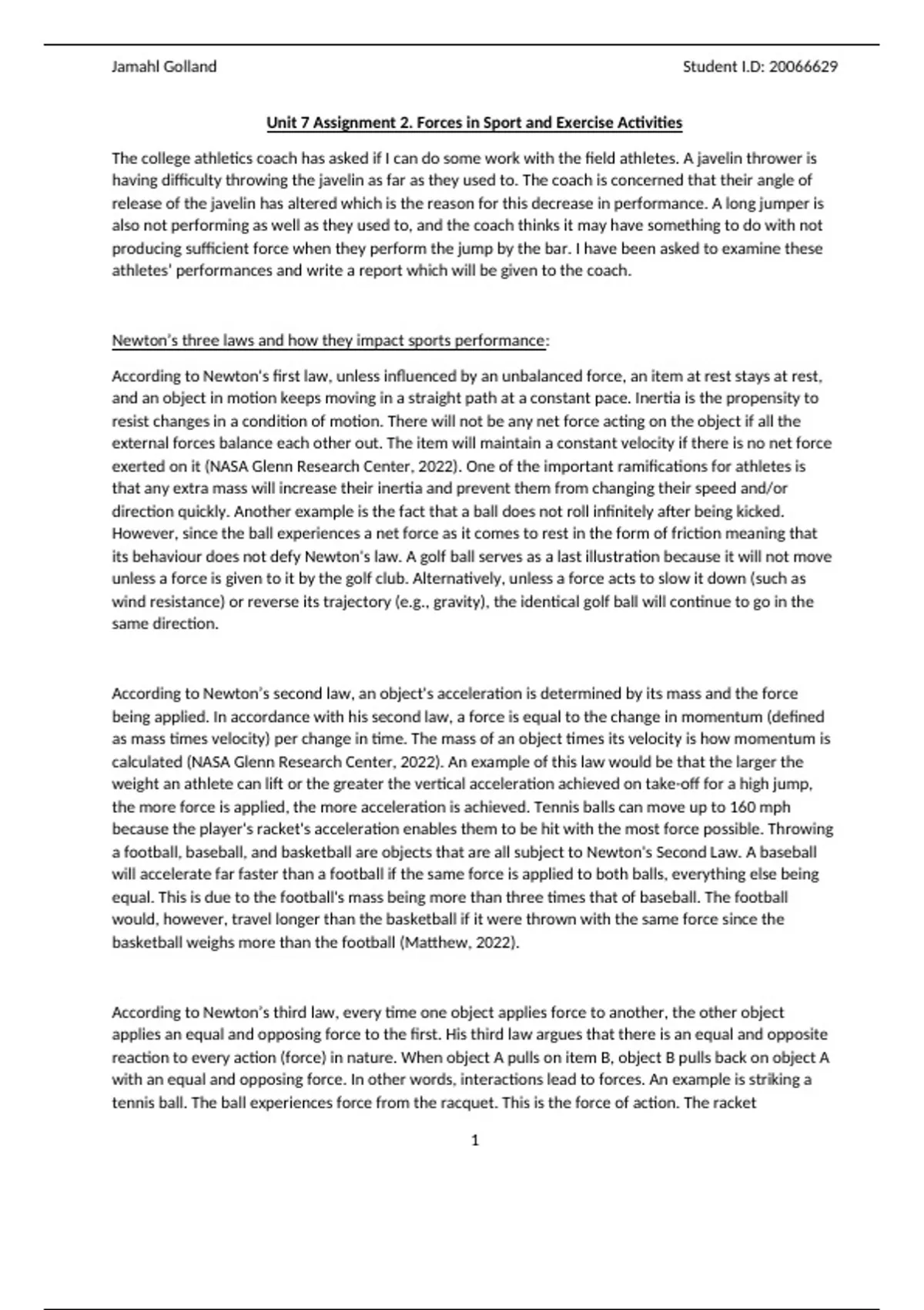 exerted on it (NASA Glenn Research Center, 2022). One of the important ramifications for athletes is