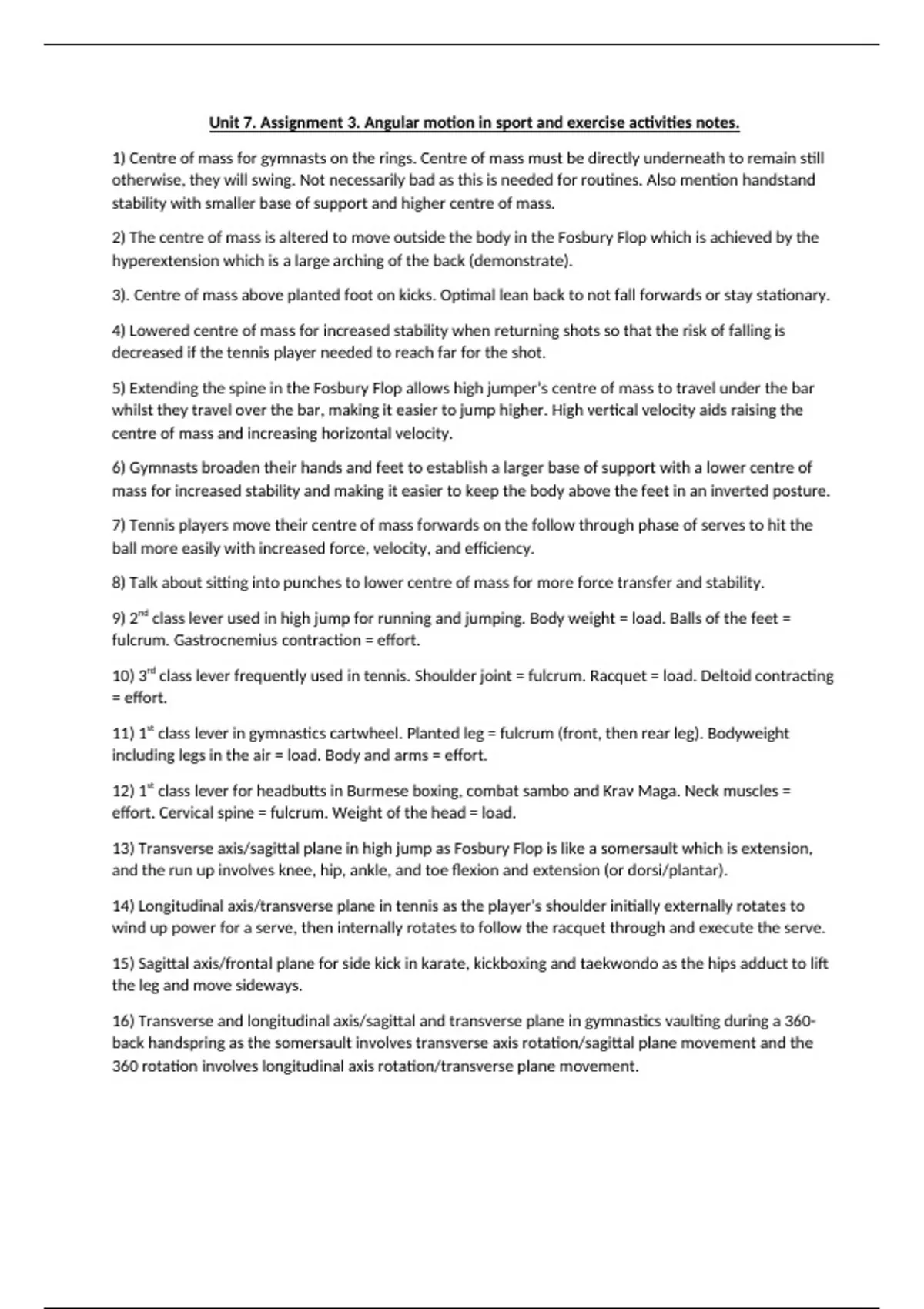 Unit 7. Assignment 3. Angular motion in sport and exercise activities notes.