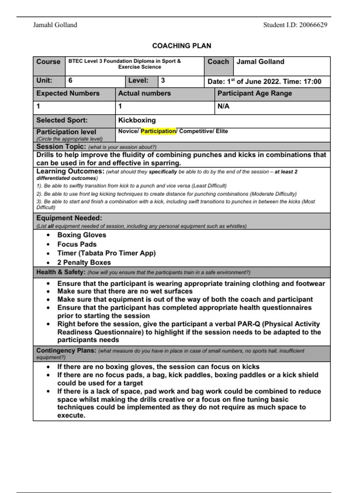 Unit: 6 Level: 3 Date: 1st of June 2022. Time: 17:00