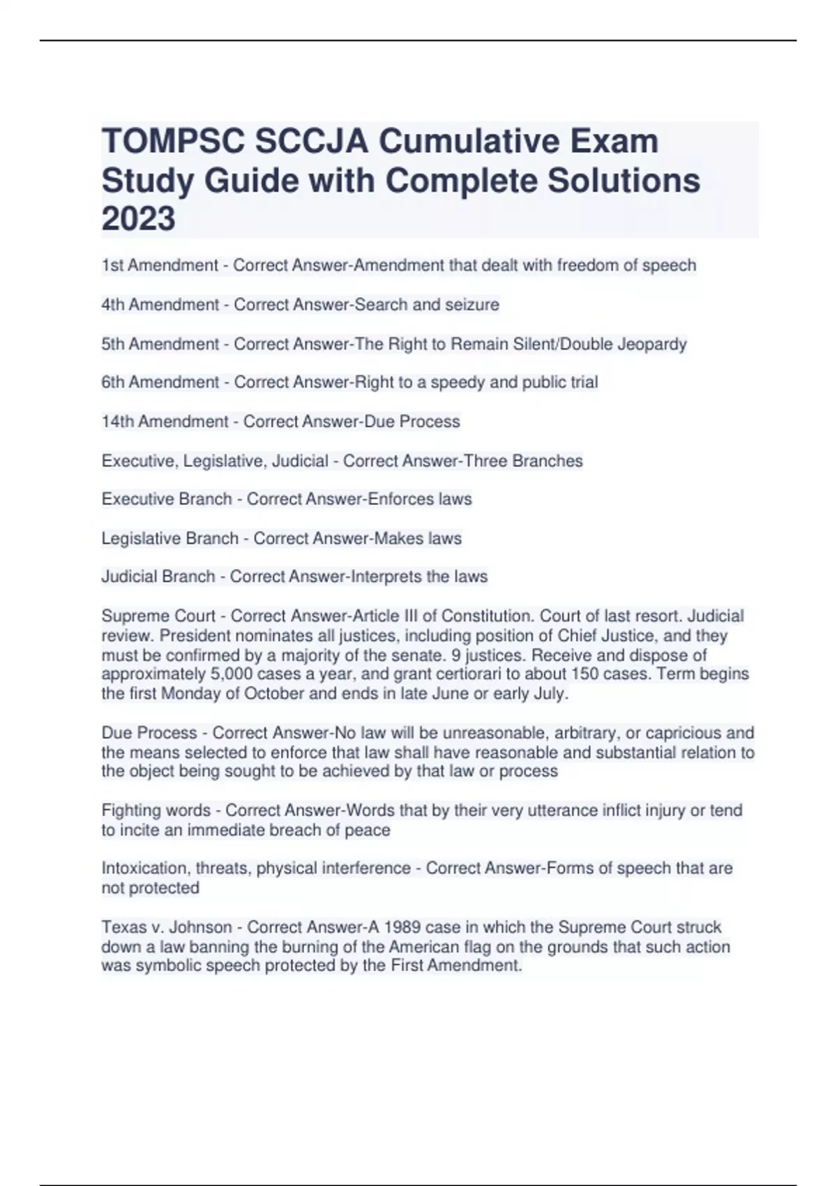 TOMPSC SCCJA Cumulative Exam Study Guide with Complete Solutions 2023