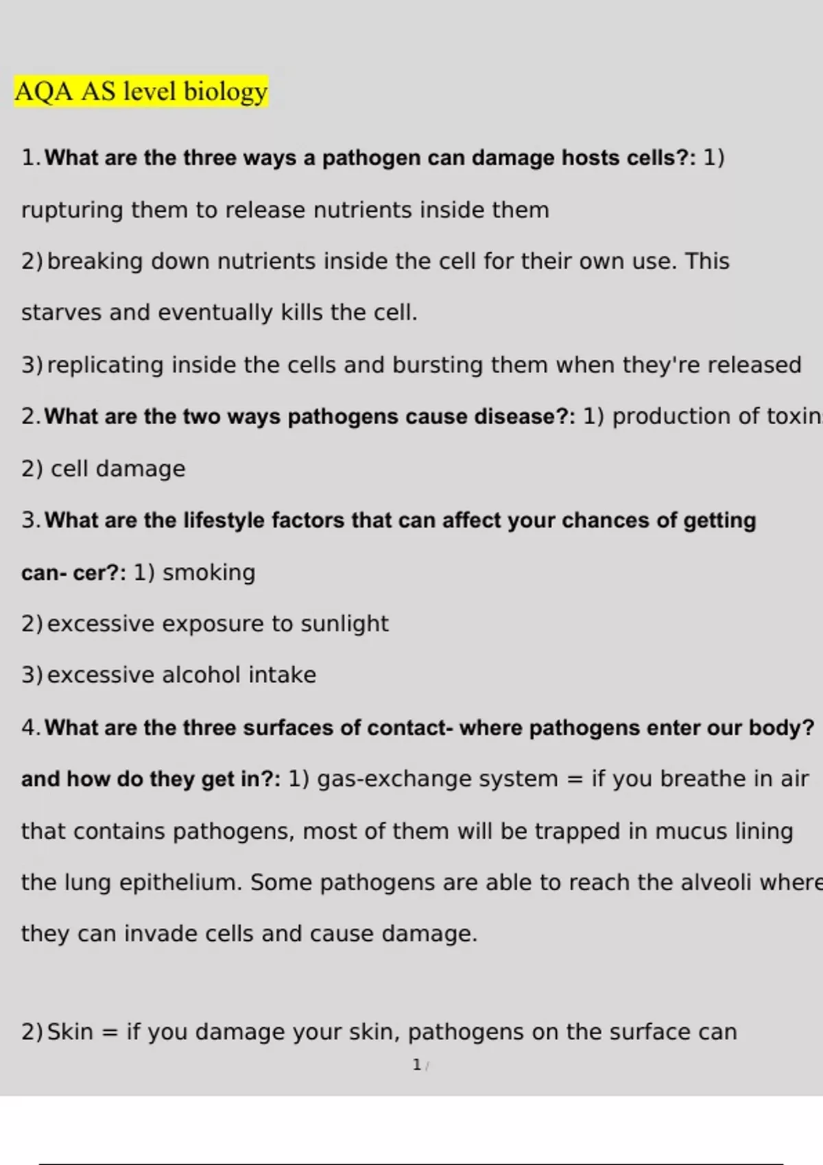 AQA AS level biology